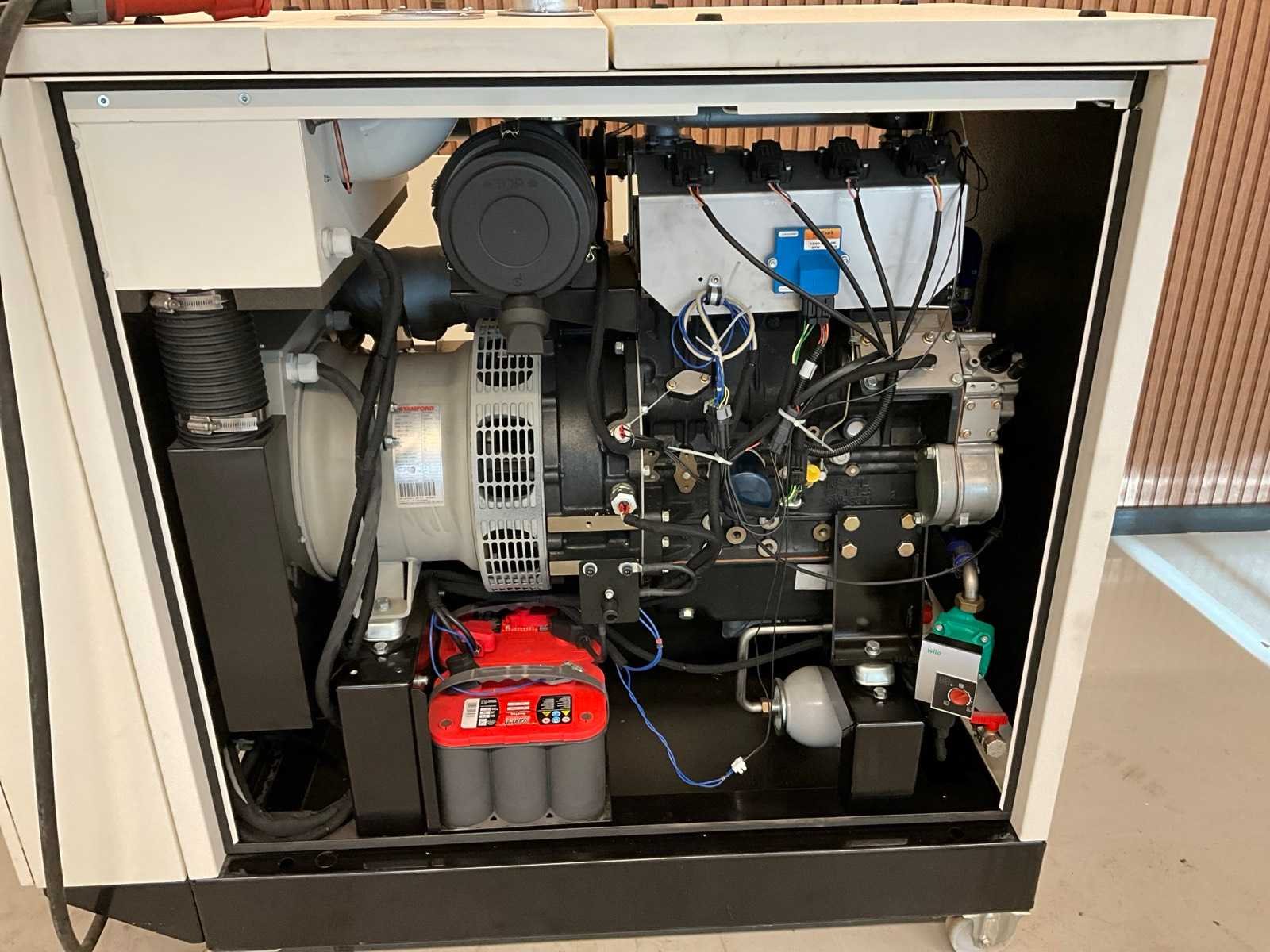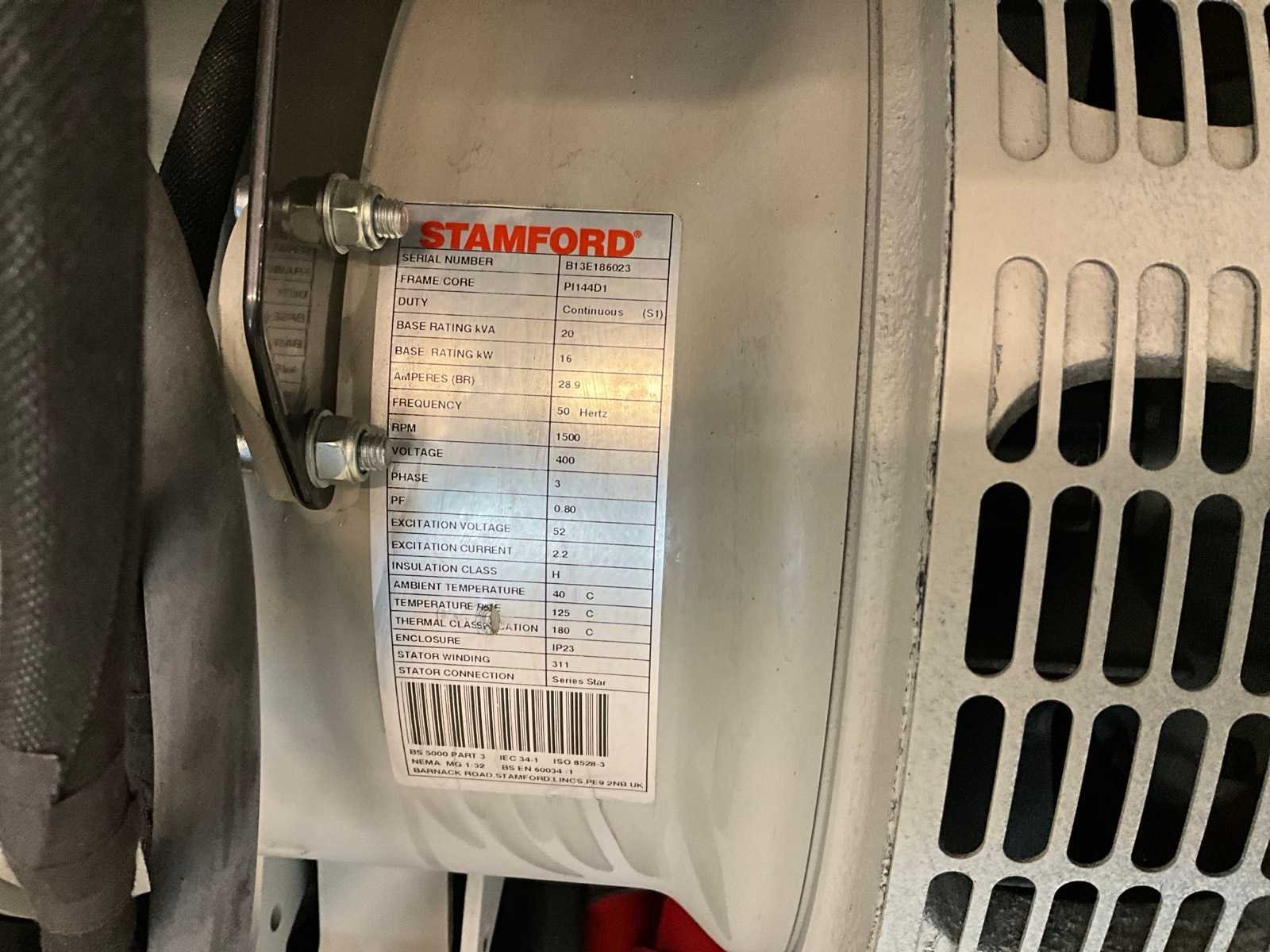 Stamford 20KVA generator, 4-cilinder gas aangedreven motorblok, warmwater terugwinning ingebouwd, 380V 32A stekker aansluiting, geluidswerende ombouwkast Nee Capaciteit.: 20kVA Type motor: Perkins Aantal cilinders: 4 Motorvermogen (kW): 16kW Mobiel: true Machinegewicht: 700kg