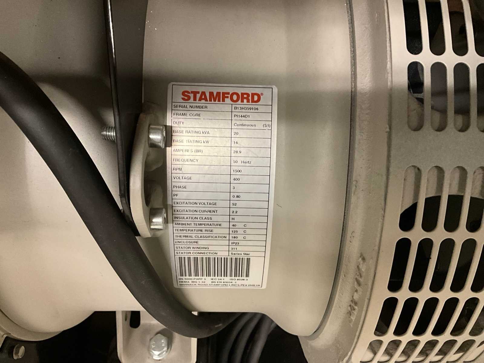 Niet compleet, Stamford 20KVA generator, 4-cilinder gas aangedreven motor, geluidswerende ombouwkast Nee Capaciteit.: 20kVA Type motor: Perkins Aantal cilinders: 4 Motorvermogen (kW): 16kW Mobiel: true Machinegewicht: 700kg