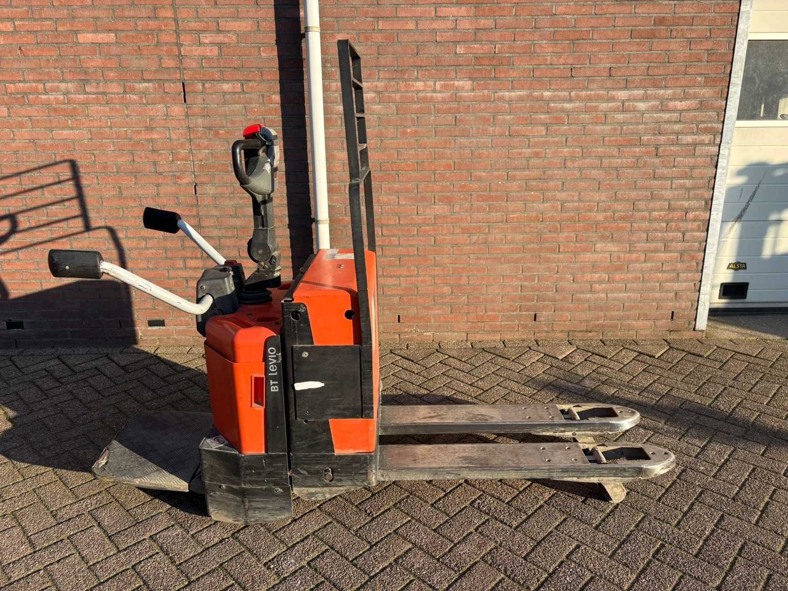 Goed werkend * lader niet inbegrepen Nee Merk: BT Type: 200/8 Bouwjaar: 2013 Hefvermogen: 2000kg Lepellengte: 1150mm Meerij palletwagen: true Eigen gewicht: 685kg Totale afmeting L: 2300mm Totale afmeting Breedte: 750mm Totale afmeting Hoogte: 1700mm Leveringsvoorwaarden: Gratis op vrachtwagen