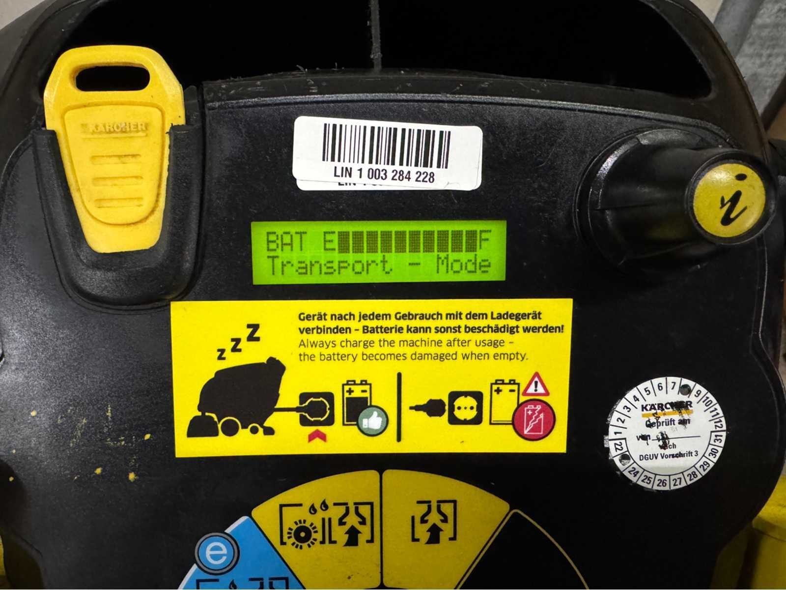 Extra opties : Accu’s uit 2021 Interne lader Aandrijving Batterij Werkbreedte borstels (mm) 650 Werkbreedte zuigen (mm) 900 Schoon-/vuilwaterreservoir (l) 60 / 60 Theoretische oppervlakteprestatie (m²/u) 3900 Praktische oppervlakteprestatie (m²/u) 2340 Batterijtype Onderhoudsvrij Batterij (V / Ah) 24 / 170 Looptijd batterijen (u) max. 3 Stroomvoorziening voor batterijlader (V / Hz) 100 – 240 / 50 – 60 Borsteltoerental (tr/min) 180 Borsteldruk (g/cm²) 26 Gangpad draaibreedte (mm) 1650 Geluidsniveau (dB(A)) 61 Toegestaan totaal gewicht (kg) 300 Afmetingen (l x b x h) (mm) 1540 x 900 x 1160 Max. vermogen (W) 2100 Kijkdag op afspraak Nee Merk: Karcher Type: B 60 W Elektrisch: true Accu lader: true