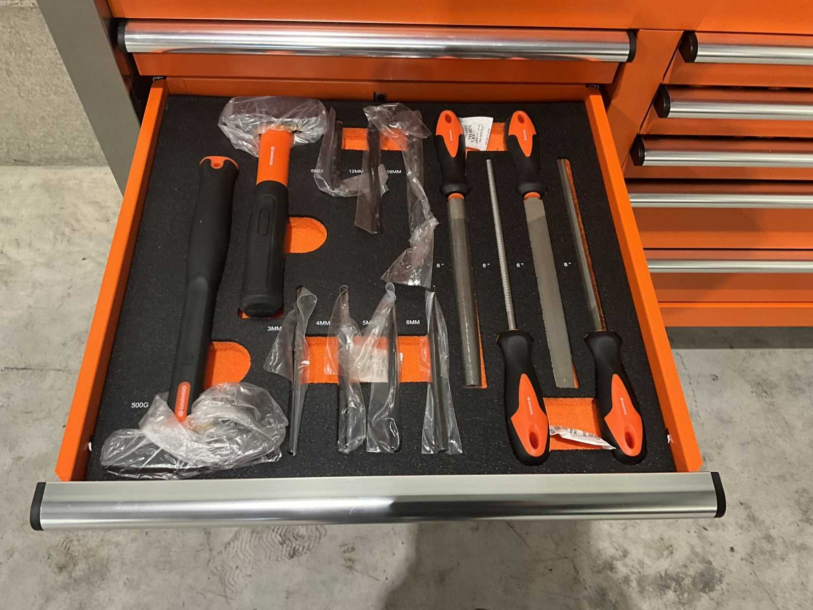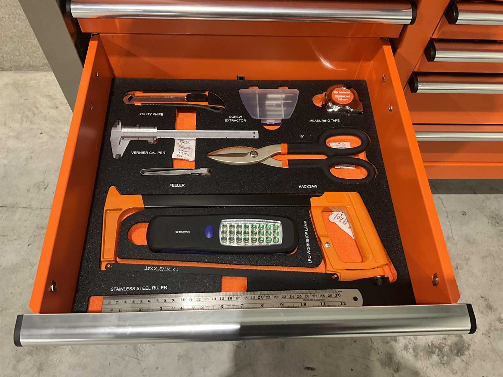 Ongebruikt 4 zwenkwielen rattelset en doppenset tot en met maat 50 386 st Heavy Duty gereedschapswagen gebruik: voor professionals aantal laden: 11 laden aantal gevulde laden: 9 gevulde laden gereedschap: chroom-vanadium gereedschap inhoud: 29-delige ring-steeksleutel set (6 mm - 50 mm) 3 ratelsleutel sets met doppen & bitsen (1/4”, 3/8” & 1/2”) 11-delige ring-ringsleutel set (6*7 mm - 30*32 mm) verstelbanre moersleutel 12-delige tangen set 2 hamers & 4 vijlen puntslag en beitel set 12 schroevendraaiers inbussleutels, Torxsleutels, precisiegereedschap 21-delige T-sleutelset 34-delige krachtdoppen set (12 mm - 50 mm) + Torx & inbus doppen & ratelsleutel 3/4,” LED-lamp, zaag, schaar, mes, meetgereedschappen enzovoort... in de originele verpakking Nee Merk: Daewoo Type: DAMW387 Bouwjaar: 2025 Aantal laden: 11 Met inhoud: true Eigen gewicht: 203kg Totale afmeting L: 1480mm Totale afmeting Breedte: 520mm Totale afmeting Hoogte: 1110mm