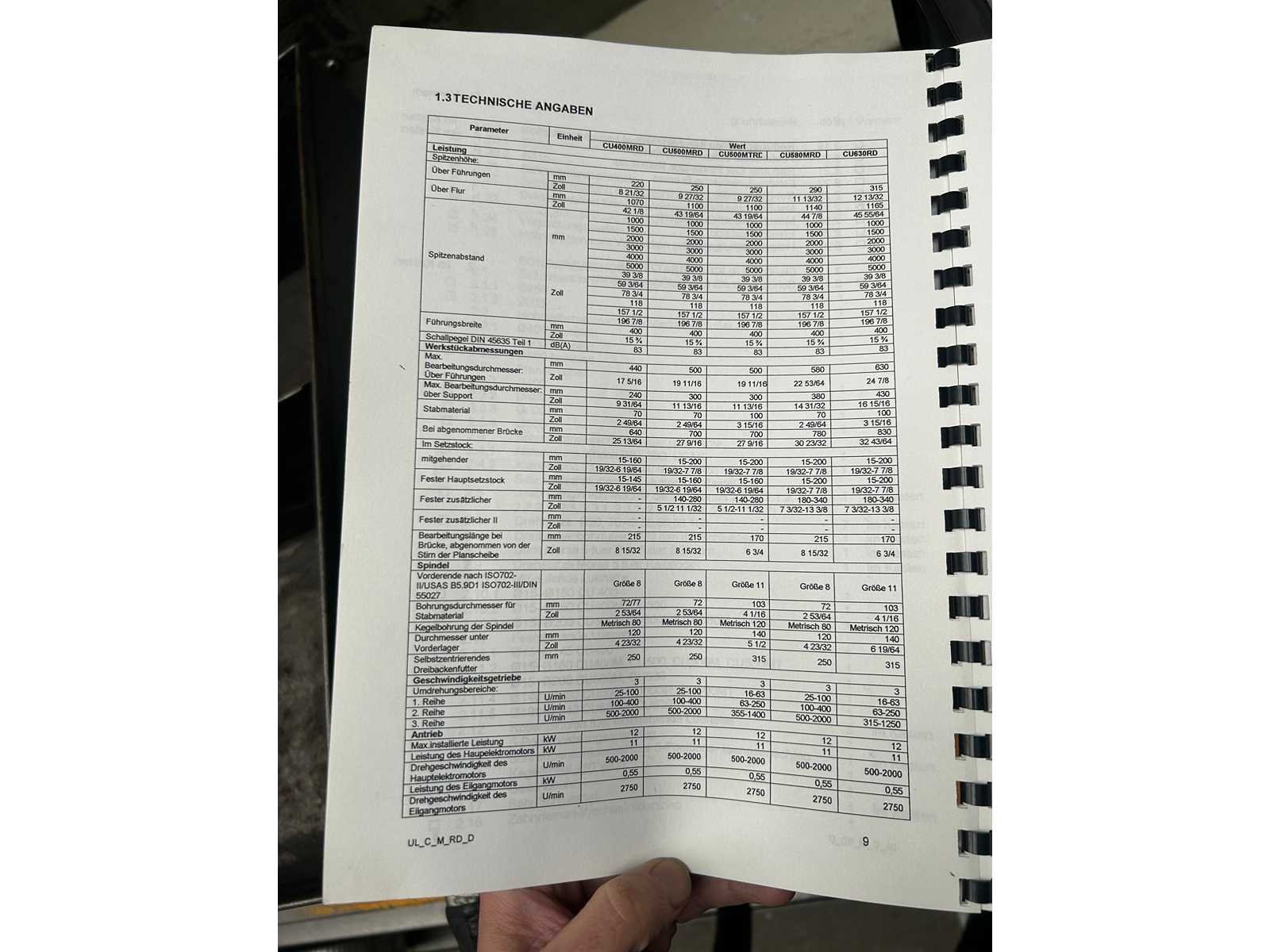No Merk: ZMM Type: CU 630 RD Bouwjaar: 2008 Draailengte: 4000mm Draai: 630mm Holle spil Ø: 103mm Snelheid van n =: 16rpm Snelheid tot n =: 1250rpm Machinegewicht: 4600kg Afmeting l: 5500mm Afmeting b: 1700mm Afmeting h: 1800mm GS Code: 84.581.900