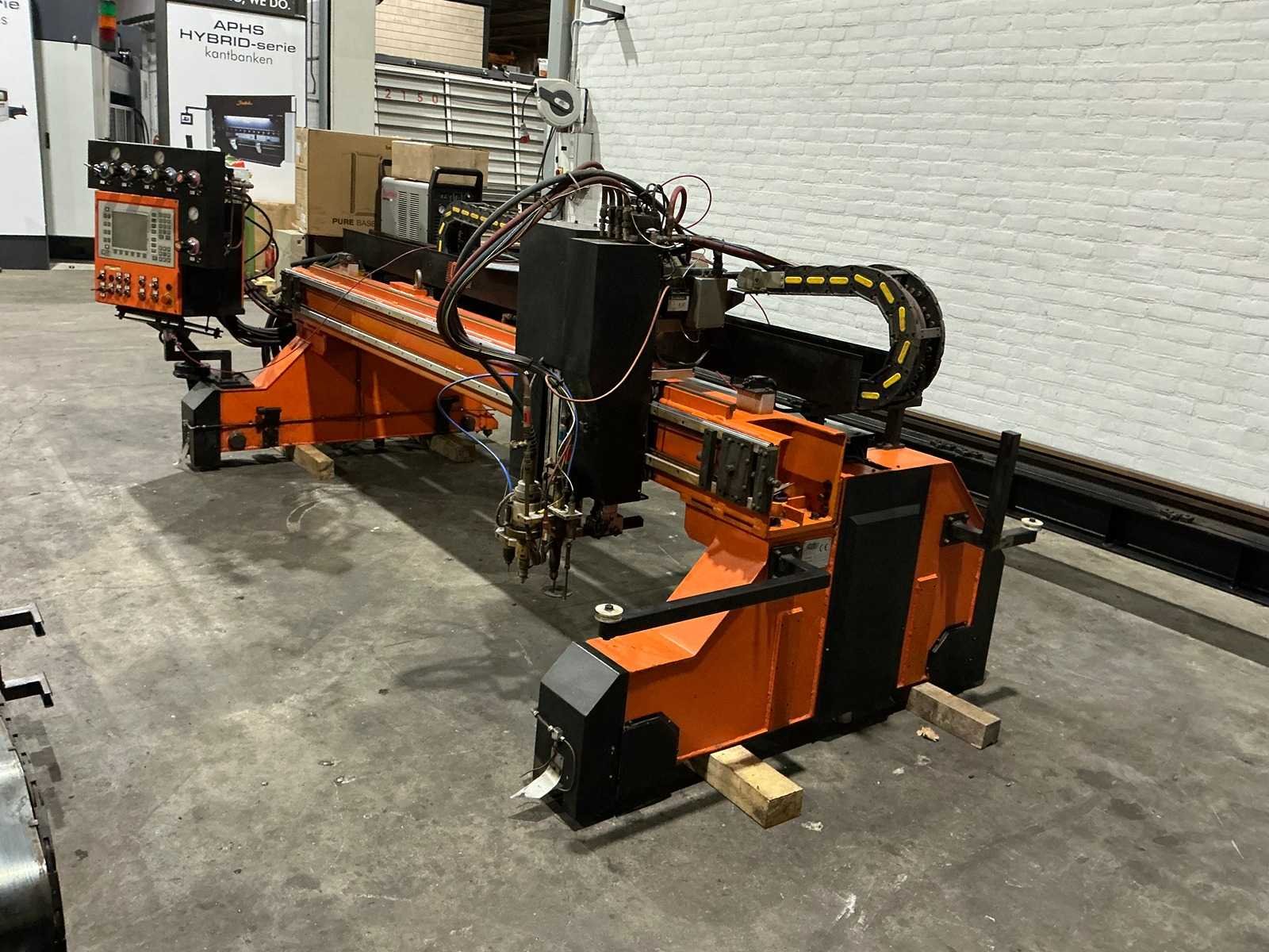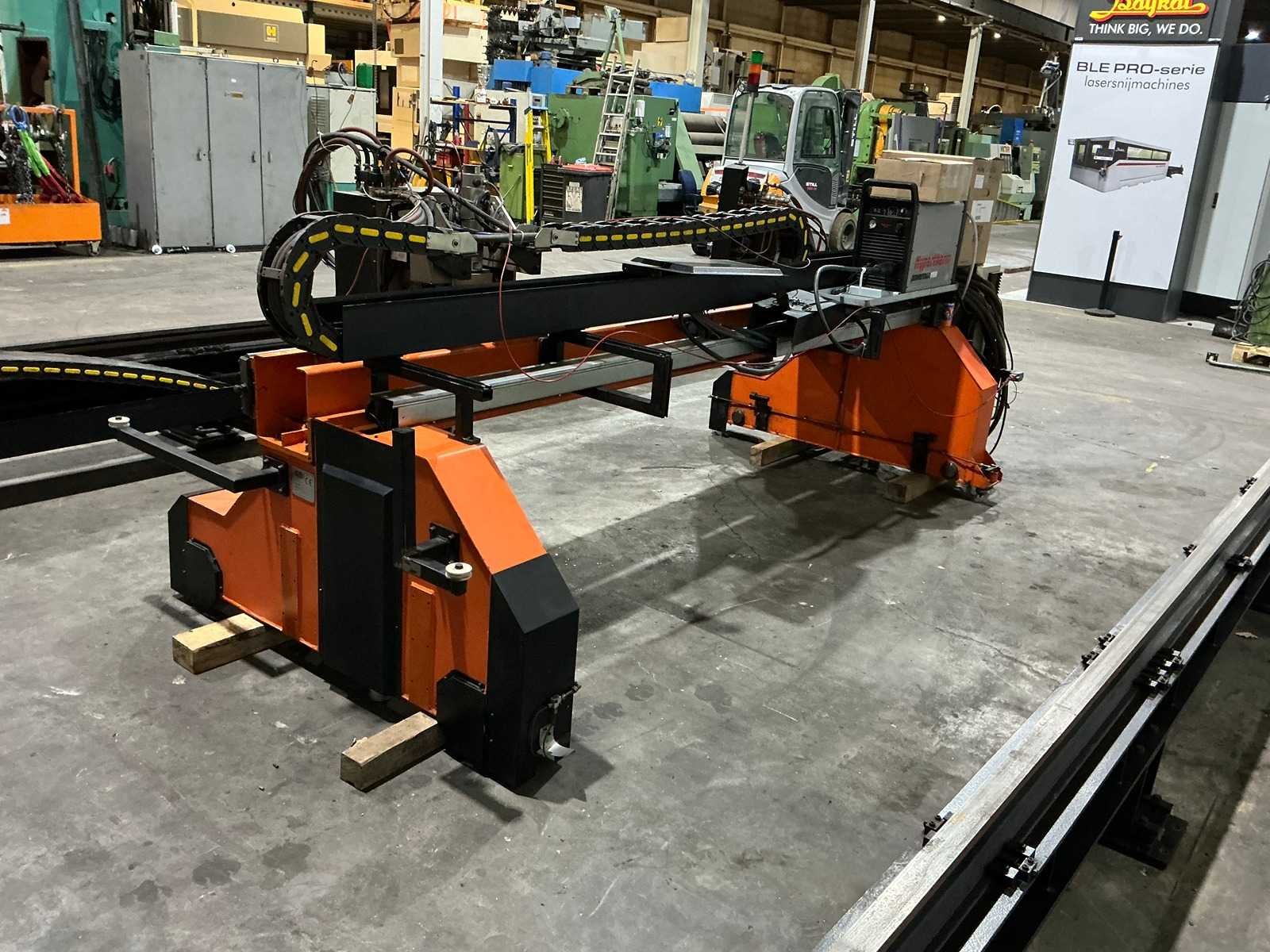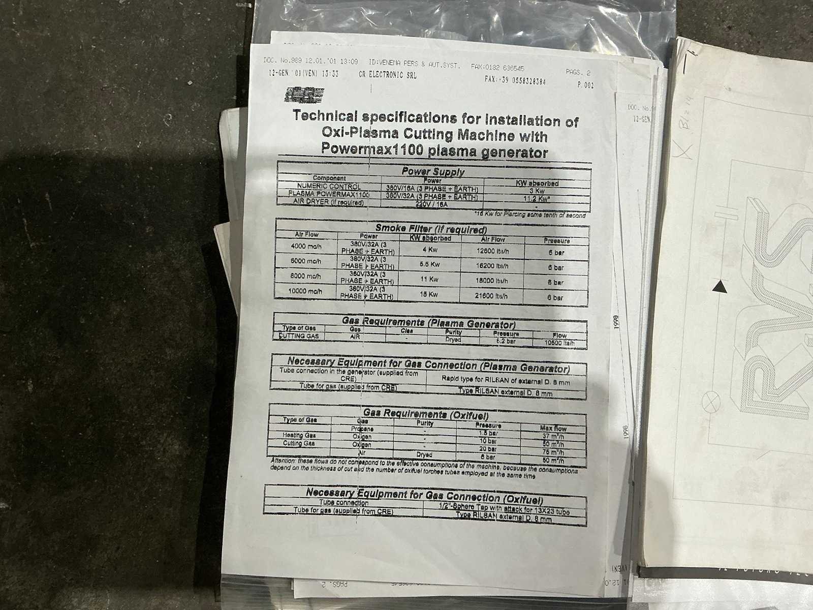 Capaciteit Staal/RVS/Aluminium plasma t/m 25mm. Hypertherm Powermax 1100, Harris Autogeen propaan 3-200mm. Snij/nesting software CR-electronic. Snijtafel is niet inclusief No Merk: CR-Electronic Type: OXY-4000x2000 Bouwjaar: 2000 Serienummer: OXY031200 Spoorbreedte: 4500mm Merk en type plasma-unit: Hypertherm Powermax 1100 Max. snijdikte: 200mm Aansluiting: 400V Machinegewicht: 3000kg Afmeting l: 6500mm Afmeting b: 2000mm Afmeting h: 2000mm