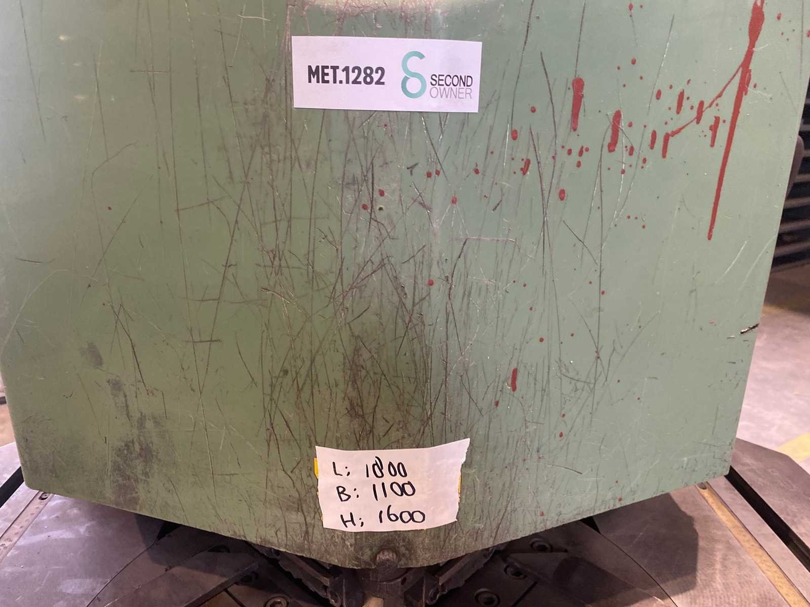 Cutting-width: 200mm Max. thickness: 4mm Variable Angle-Adjustment: 15-150gr Table-size: 1100x780mm No Merk: FIM Type: VERSA 204 Bouwjaar: 1993 Elektrisch aangedreven: true Voetbediening: true Motorvermogen (kW): 4kW Machinegewicht: 1200kg Afmeting l: 1100mm Afmeting b: 1800mm Afmeting h: 1600mm GS Code: 84.624.100