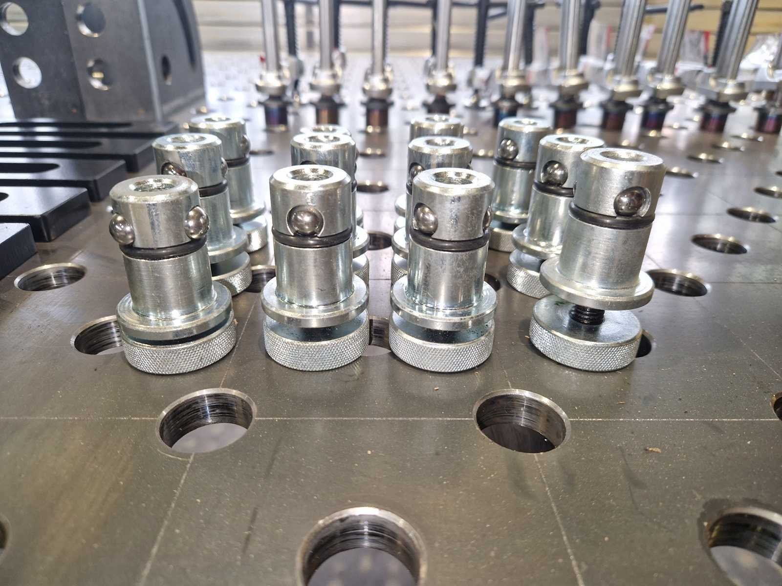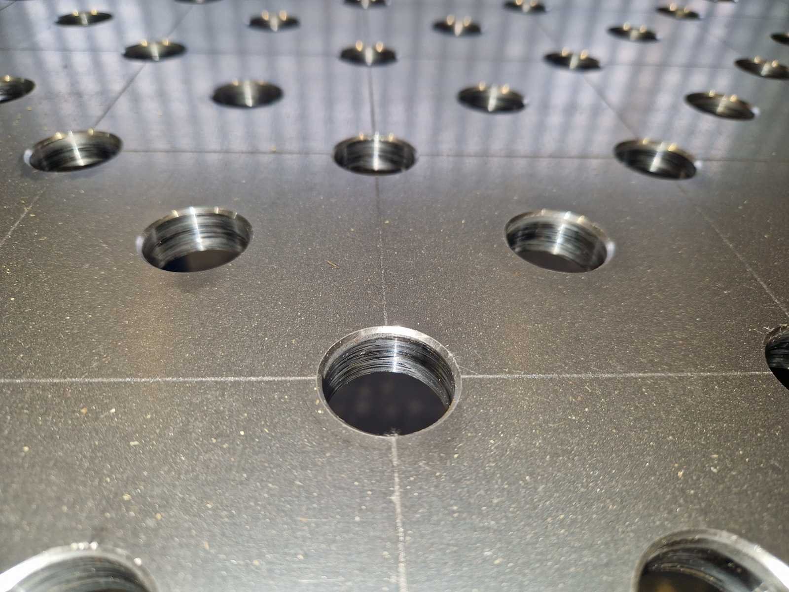 Welding table/clamping table, drilled holes and diagonal grid. Table-thickness: 15mm, hole-diameter: 28mm. Including a full set accessoires: - 4x 3D Angle - 6x Stop small - 6x Stop large - 1x Protractor - 2x Prism - 1x Eccentric - 1x Flat Angle - 12x Tension/clamping bolt - 12x Clamp No Merk: BODE Type: L3015 Bouwjaar: 2024 Gewicht: 1000 Lengte: 300cm Breedte: 150cm