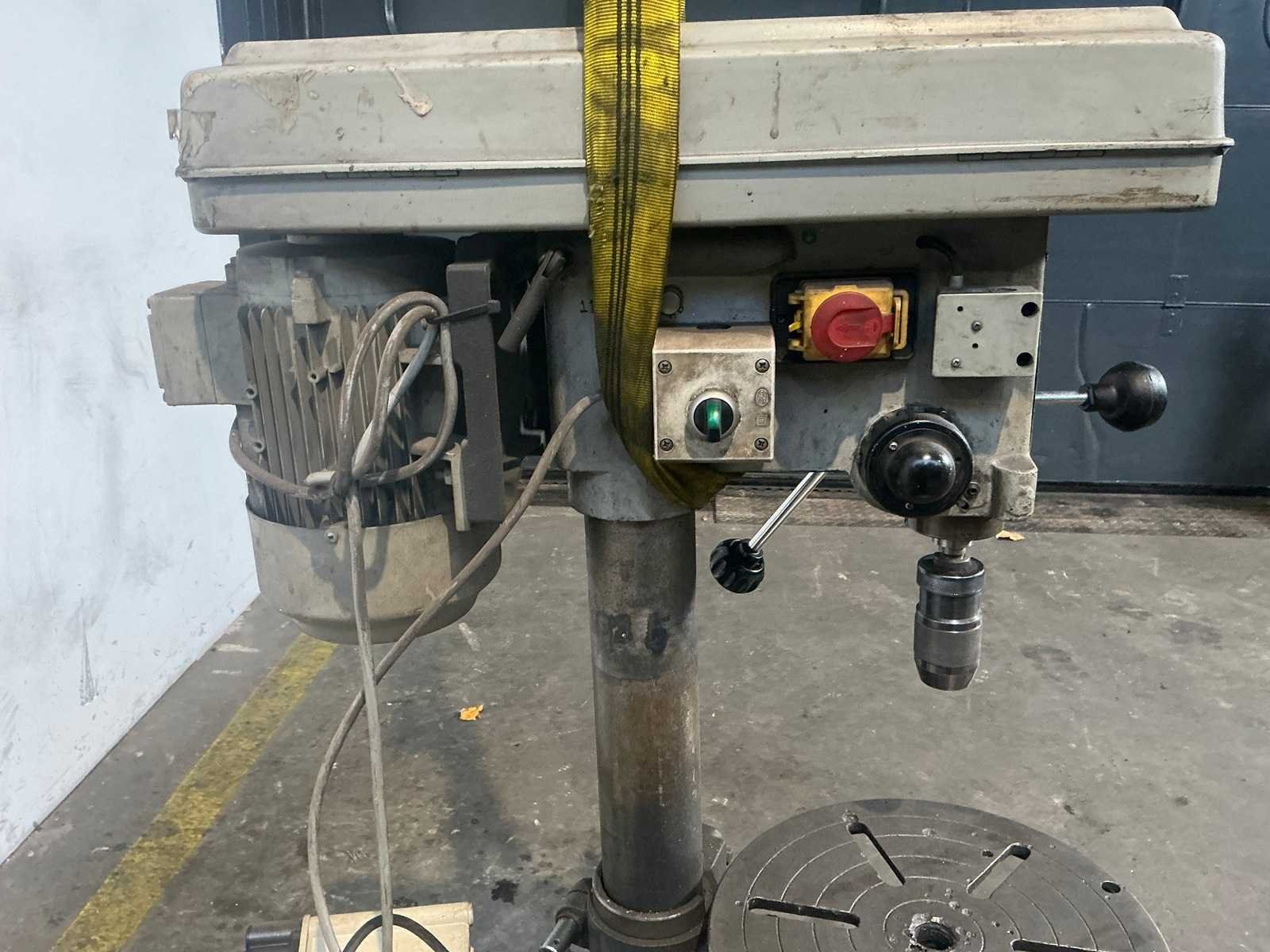 Frequentieregelaar voor traploos toerental, met toebehoren, machineklem, boren. No Merk: Huvema Type: HU 18 industry Bouwjaar: 2001 Boorcapaciteit: 18mm Toerental traploos: true Boordiepte: 90mm Uitlading: 190mm Tafel afmeting l: 320mm Tafel afmeting b: 320mm Motorvermogen (kW): 1,1kW Aansluiting: 230V