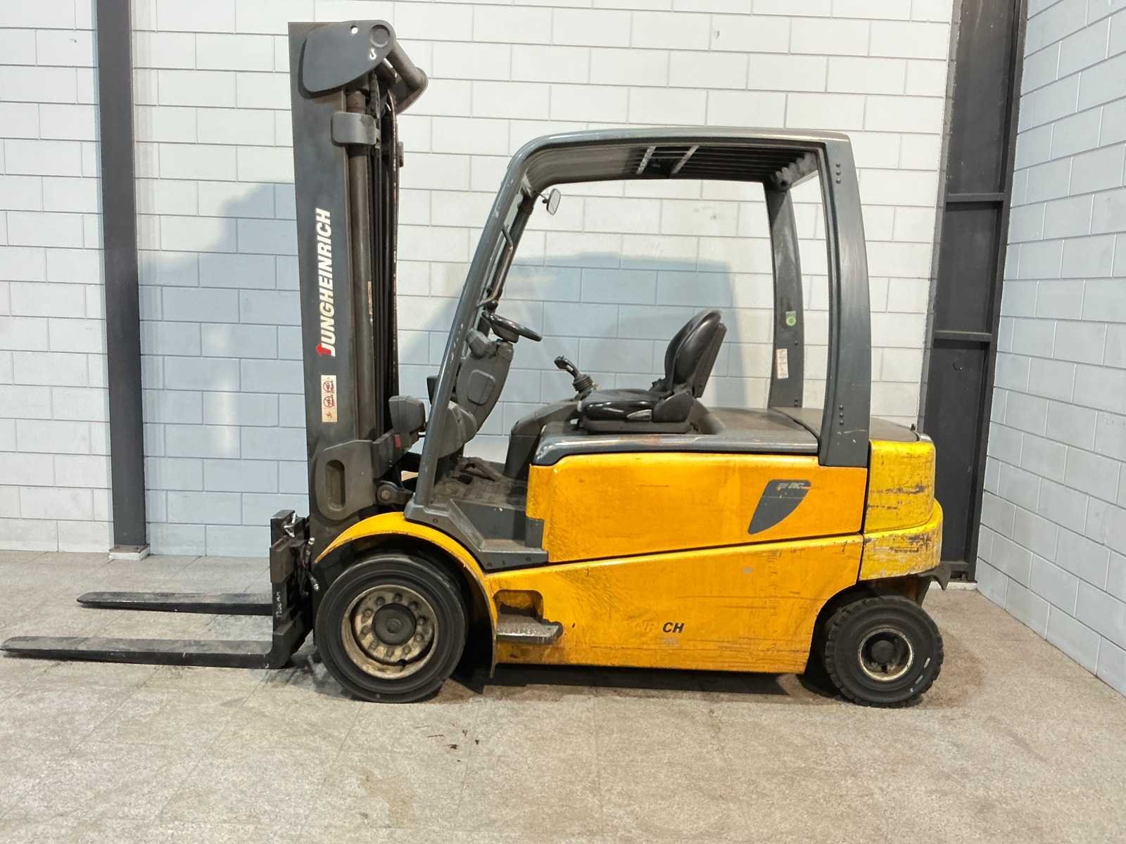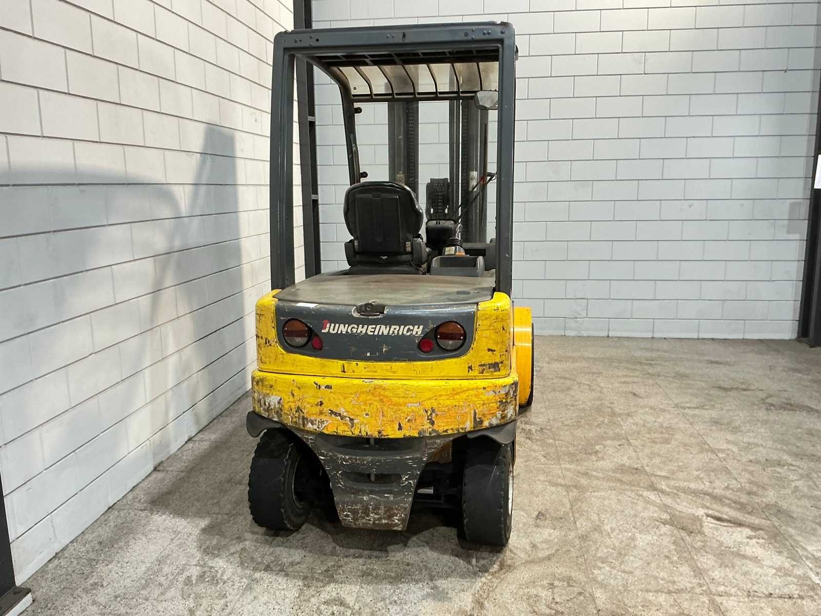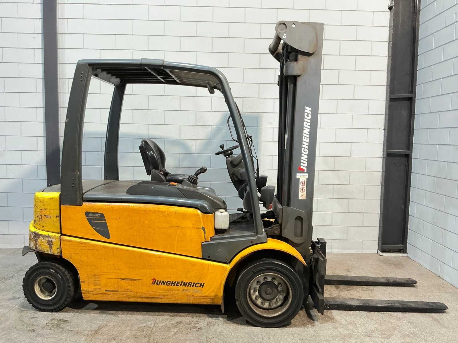 Batterij 2018 3de+4de ventiel tot vorkenbord No Merk: Jungheinrich Type: EFG550 Bouwjaar: 2007 Brandstof: Elektrisch Aantal wielen: 4 Afgelezen urenstand: 12034 Accu lader: true Free-lift: true Side-shift: false Triple mast: true Eigen gewicht: 7300kg Hefvermogen: 5000kg Lepellengte: 1200mm Hefhoogte: 5670mm Vol rubber banden: true Minimale doorrijhoogte: 2500mm Totale afmeting L: 3980mm Totale afmeting Breedte: 1480mm Totale afmeting Hoogte: 2680mm