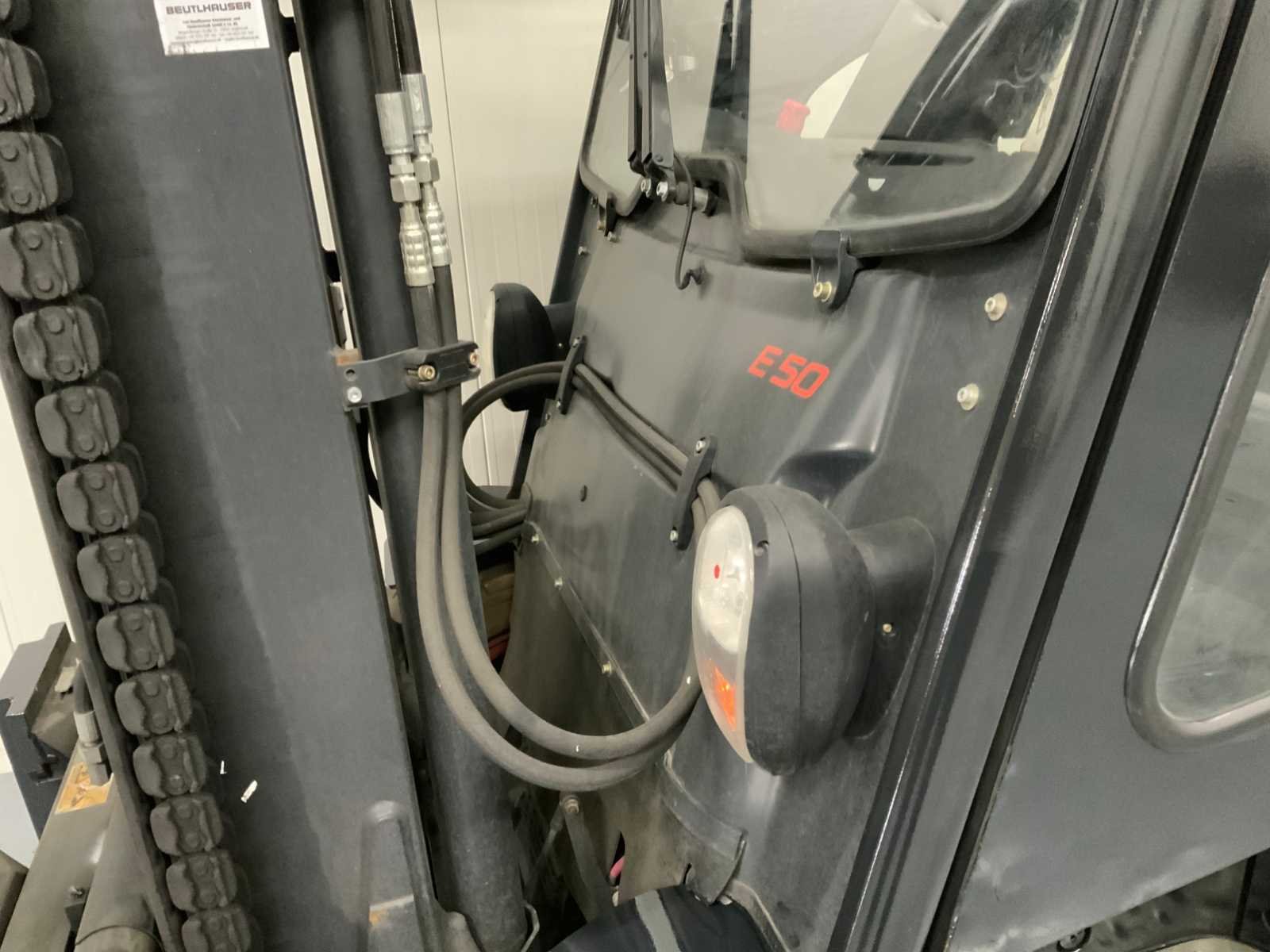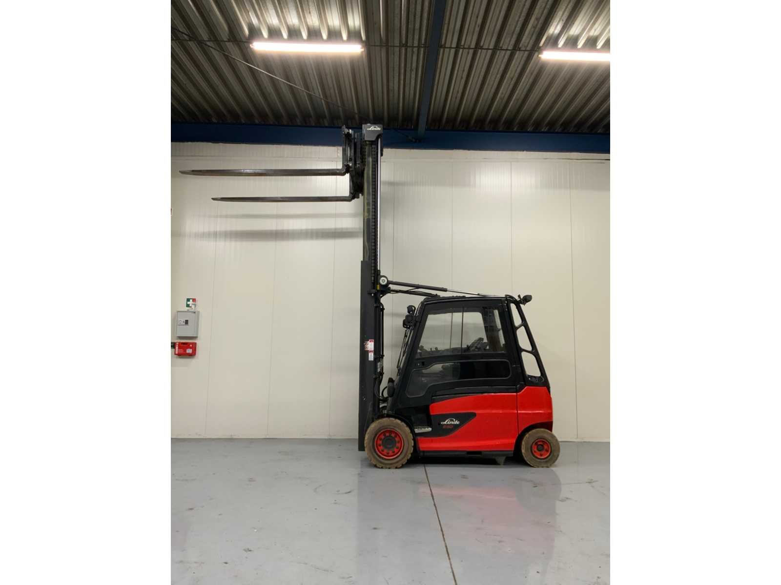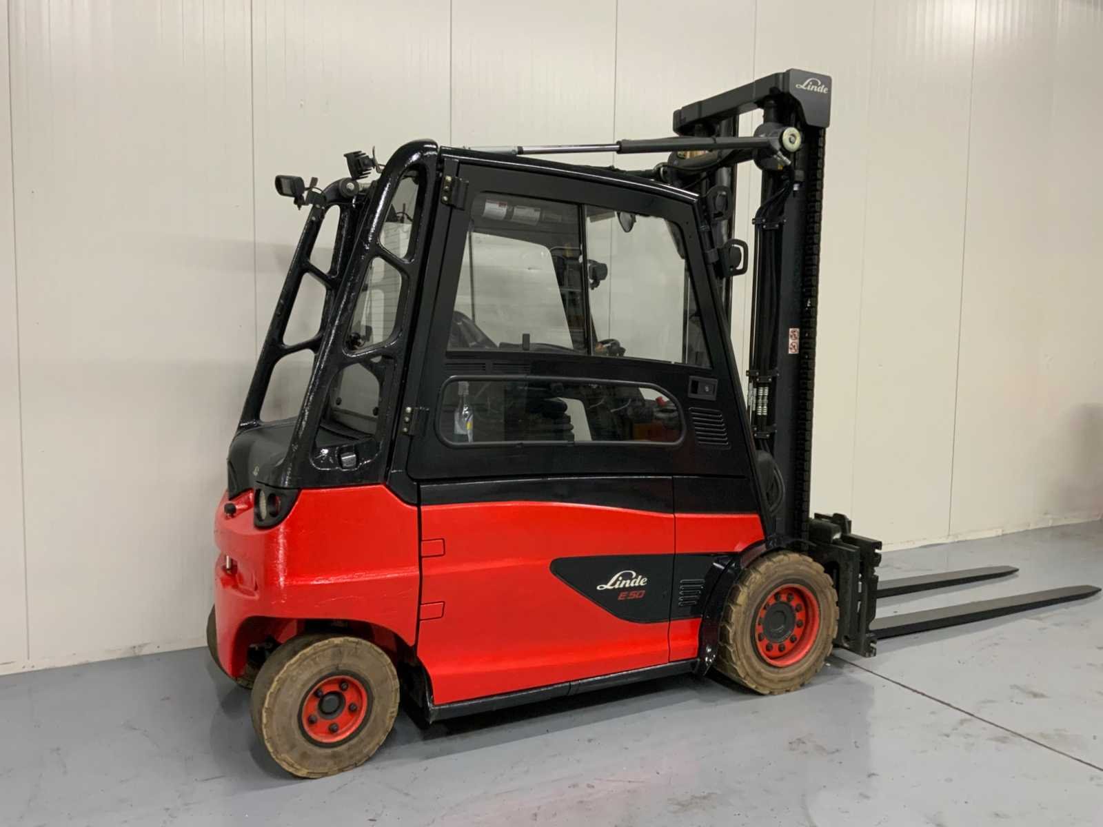 Extra opties: Blue spot voorzijde, Blue spot achterzijde, Hydraulisch verstelbare lepels, Led verlichting voorzijde, Led verlichting achterzijde, Dichte cabine, Joysticks, Kachel, Achterruit verwarming, Nee Merk: Linde Type: E50 Bouwjaar: 2017 Brandstof: Elektrisch Mast: Duplex Soort band: Volrubber banden Aantal wielen: 4 Side-shift: true Hydraulisch verstelbare lepels: true Duplex mast: true Eigen gewicht: 8032kg Hefvermogen: 5000kg Lepellengte: 2300mm Max. hefhoogte: 4160mm Hefhoogte: 4160mm Vol rubber banden: true Totale afmeting L: 5400mm Totale afmeting Breedte: 1420mm Totale afmeting Hoogte: 2900mm