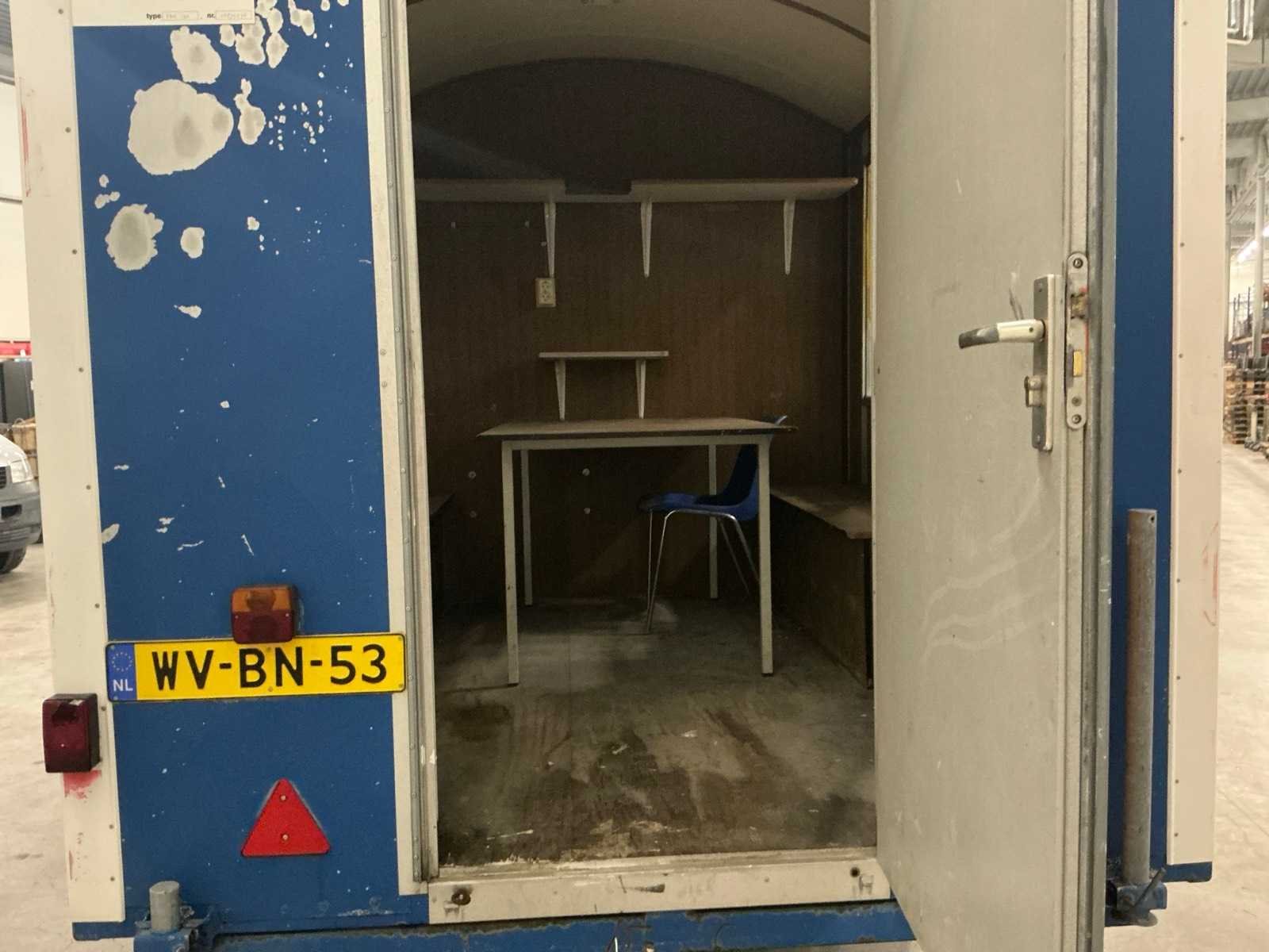 Nee Merk: Boehmer prefab wagenbouw Kenteken: WV-BN-53 Afmeting l: 3830mm Afmeting b: 2150mm Afmeting h: 2400mm Totale afmeting L: 4300mm Totale afmeting Breedte: 2200mm Totale afmeting Hoogte: 3000mm
