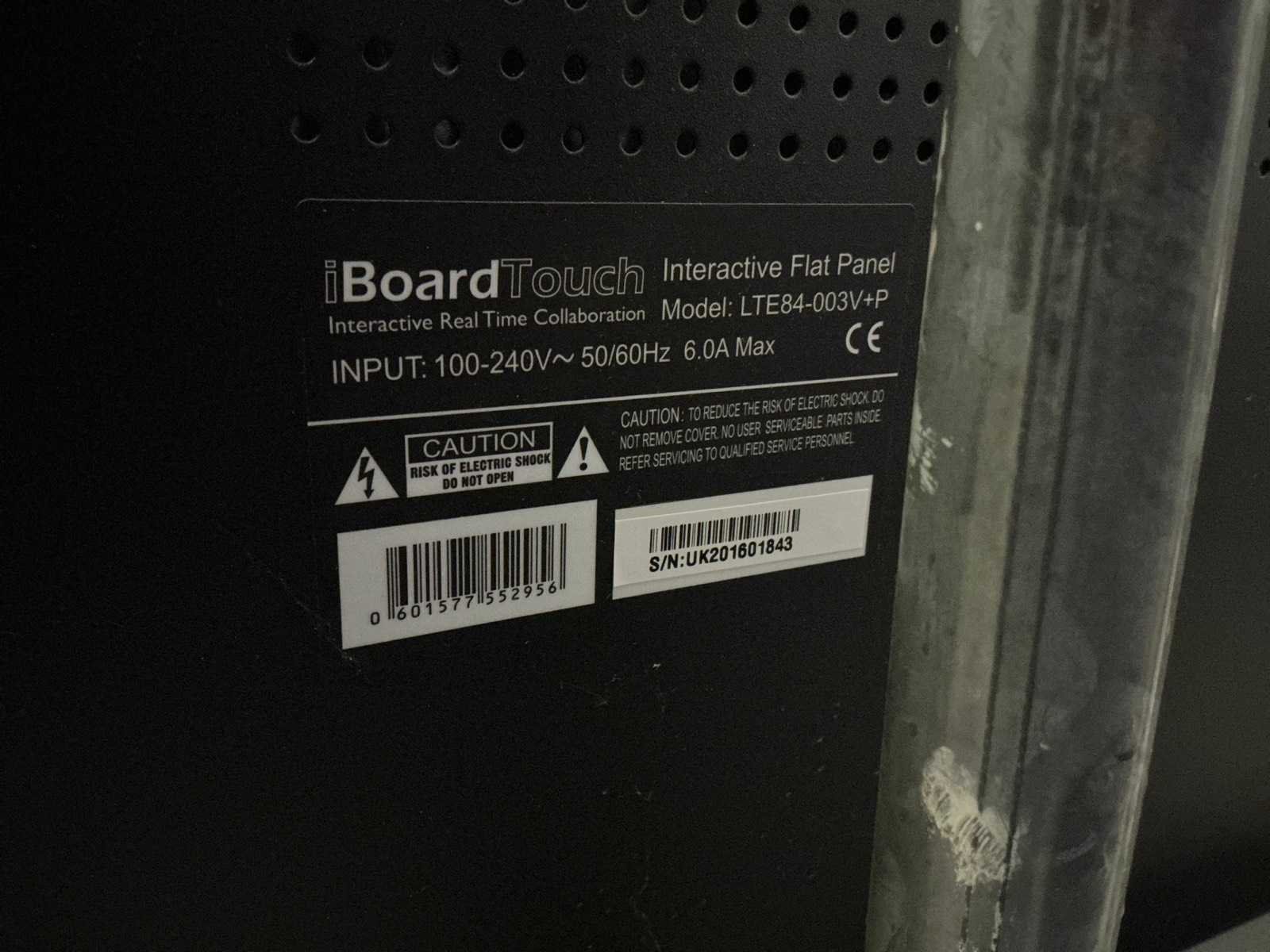 Voorzien van wandbeugel, zonder afstandbediening, zonder kar Nee Merk: Boardtouch Type: LTE84-003V+P Serienummer: UK201601843 Aansluiting: 230V Totale afmeting L: 1960mm Totale afmeting Hoogte: 1150mm