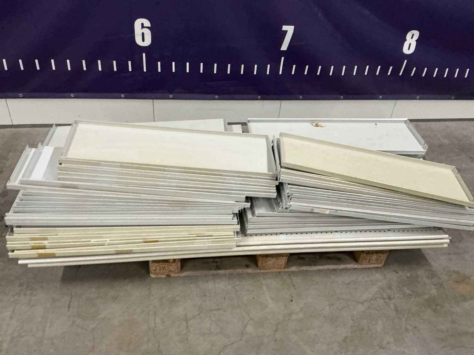 Bestaande uit circa 75 legborden(950x300mm) en 11 staanders(300x2000mm), op en inclusief 1 pallet Nee