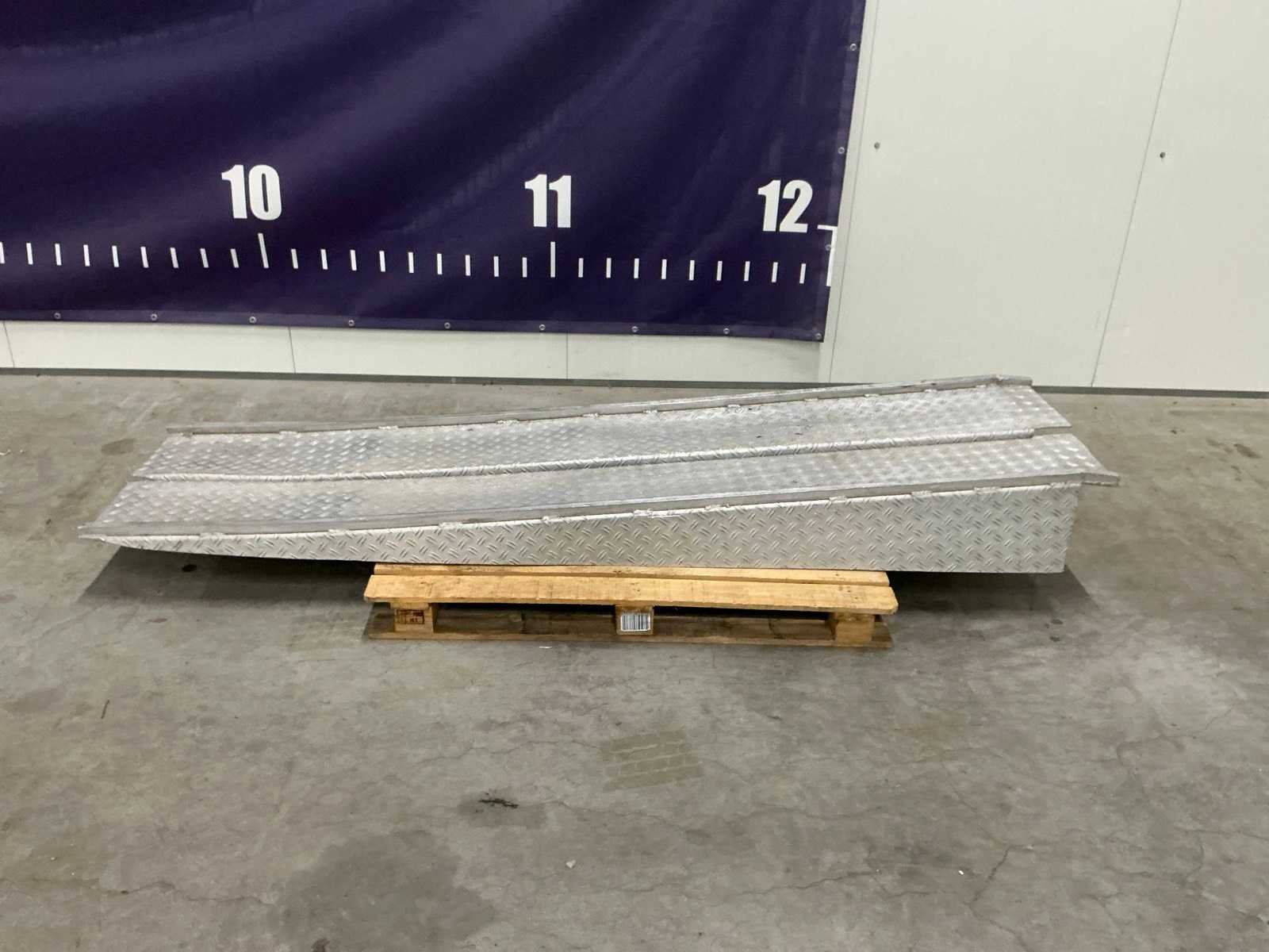 Aluminium, lengte per stuk 2480mm, rijplaatbreedte 270mm, breedte totaal per stuk circa 310mm, oprij hoogte circa 250mm. Nee