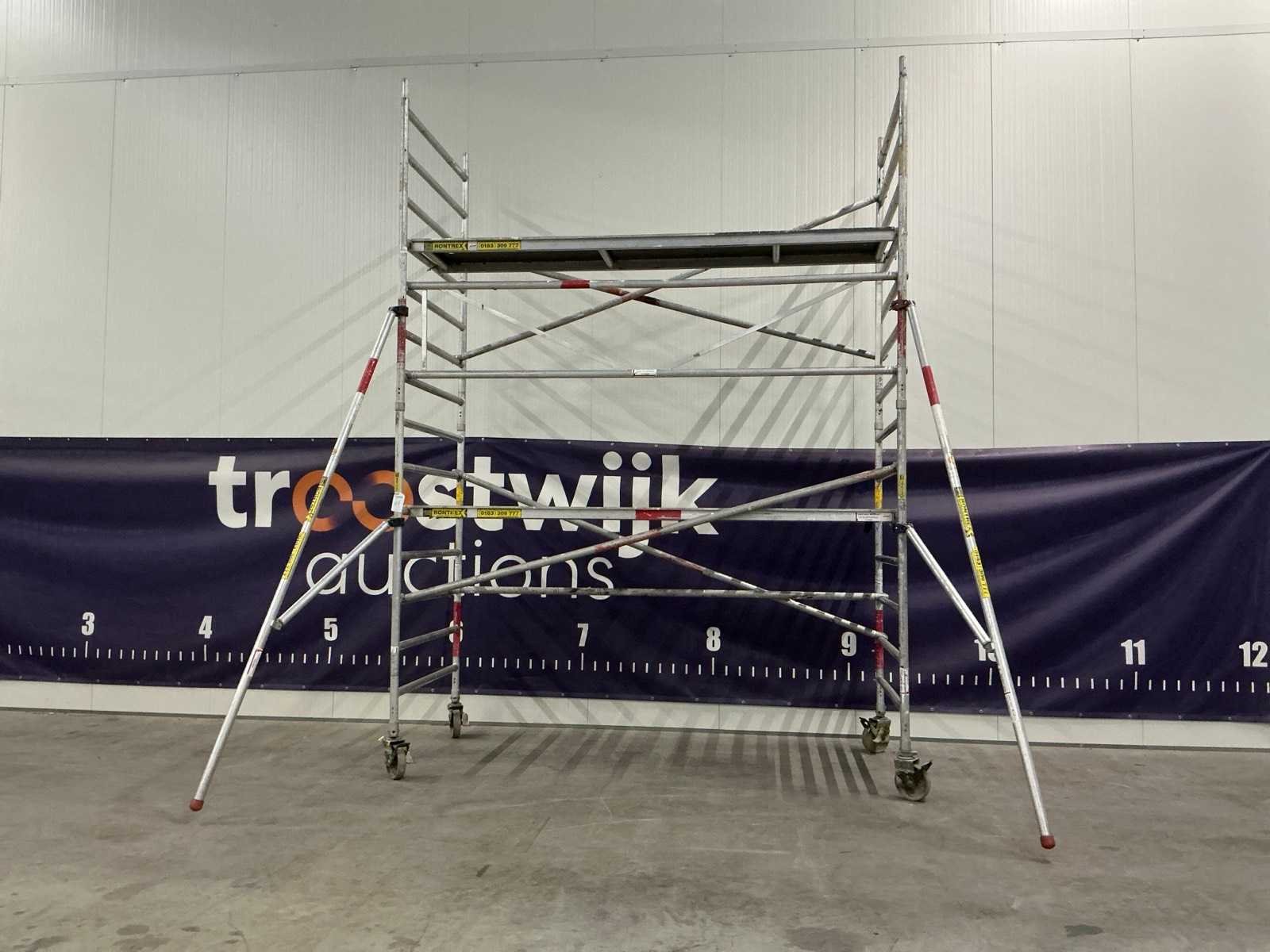 Nee Merk: Rontrex Afmeting l: 3120mm Afmeting b: 1350mm Afmeting h: 4320mm Aantal opbouwdelen: 2 Aantal platforms: 2 Diagonale schoor lengte: 3260mm Aantal horizontaalschoren: 5 Aantal leuningen: 1