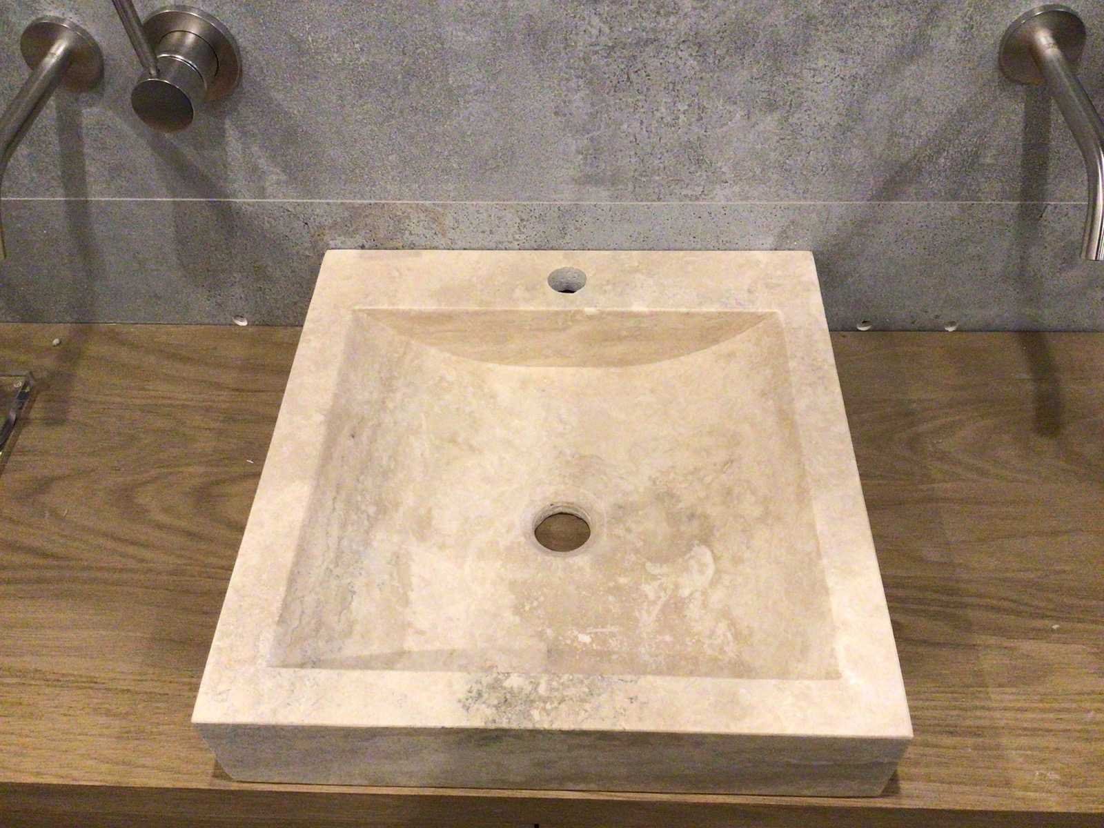 Natuursteen travertin beige wastafel 45x46x10 cm