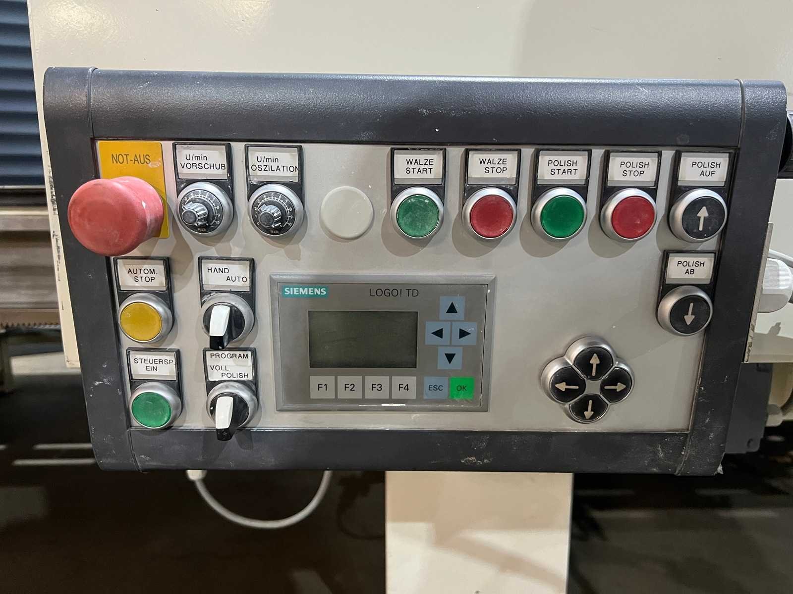 De Bauerrichter ESR-1 is een polijstmachine ontworpen voor het creëren van hoogglansoppervlakken op diverse materialen. Hieronder vindt u een overzicht van de technische specificaties: 20kW Afmetingen (LxBxH) 5600x2400x2100 mm Werktafel afmetingen: 1350x3200mm Max werstukhoogte: 100mm Diameter polijstwals: 400mm Kenmerken: Polijstunit: Beweegt over een vaste werktafel en is uitgerust met een schuin geplaatste, oscillerende polijstwals. De hoogte en oscillatiesnelheid zijn traploos instelbaar. Polijstwals: Voorzien van speciale polijstringen met een diameter van 400 mm, die zorgen voor een langere levensduur en lagere operationele kosten. Snelwisselsysteem: Maakt een eenvoudig en snel vervangen van polijstringen mogelijk, wat de insteltijd vermindert. Werkstukbevestiging: Standaard uitgerust met een snelspansysteem; optioneel is een vacuümspansysteem beschikbaar voor snellere en comfortabelere bediening. Constructie: Robuust gelaste precisiewerktafel met fenolhars verlijmde filmplaten, bestand tegen warmte, vocht en chemische middelen. Aandrijving: Hoogwaardige SEW-elektromotoren met energie-efficiëntieklasse EFF1 (IE2), bekend om hun robuustheid en duurzaamheid. Deze machine biedt een efficiënte oplossing voor het polijsten van diverse materialen en is ontworpen met het oog op duurzaamheid en gebruiksgemak. Nee Merk: Bauerrichter Type: ES-R1 Serienummer: 150610 Aansluiting: 380V Machinegewicht: 3000kg Afmeting l: 5600mm Afmeting b: 2400mm Afmeting h: 2100mm