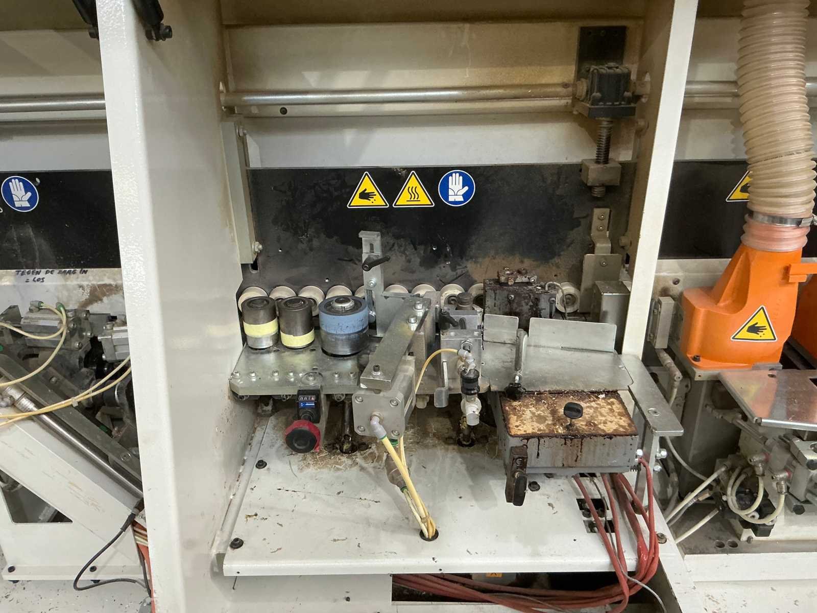 Voorfreesunit Lijmunit Kapunit Grof freesunit Radius-schraapunit Vlakschraapunit Max kantbanddikte: 6mm Max paneeldikte: 60mm Min paneellengte: 140mm Max doorvoersnelheid: 11m/min Nee Merk: SCM Type: Olimpic K400 T-E Bouwjaar: 2011 Serienummer: AH/115214 Zaagunit: true Voorfreesunit: true Schraapunit: true Afmeting l: 4000mm Afmeting b: 675mm Afmeting h: 1600mm