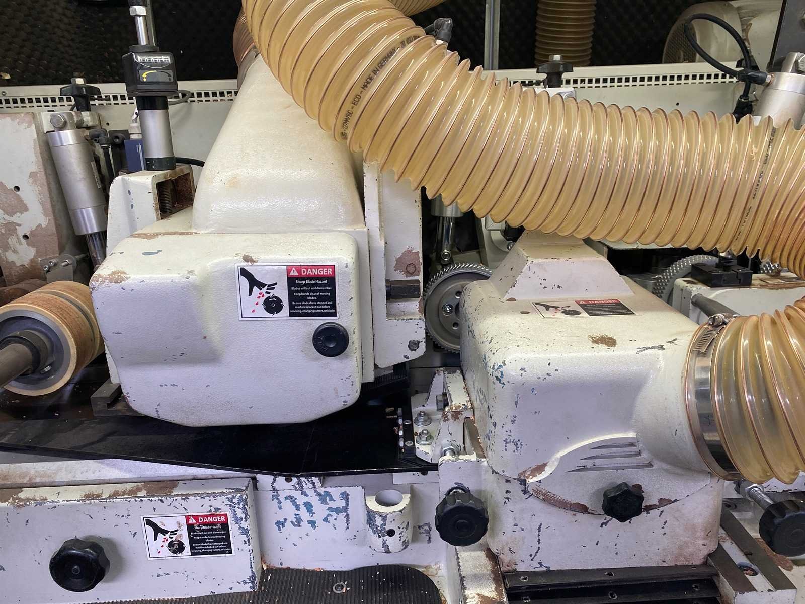 Min/max Werkhoogte 8/150 mm min/max Werkbreedte18/230 mm Spindelsnelheid 6000 tpm Motoren Spindel - horizontaal onder 7,5kW Spindel - verticaal rechts 7,5kW Spindel - verticaal links 11 kW Spindel - horizontaal boven 11 kW Uitvoertafel Weidner-buffertafel Type DBT 4500B Afmetingen 4500 x1750 x 97 mm (L x B x H) Nee Merk: Kuper Type: SWT 23 XL-5R Bouwjaar: 2008 Aantal assen: 4 Spil Ø: 40mm Machinegewicht: 4000kg Afmeting l: 3100mm Afmeting b: 1850mm Afmeting h: 1750mm