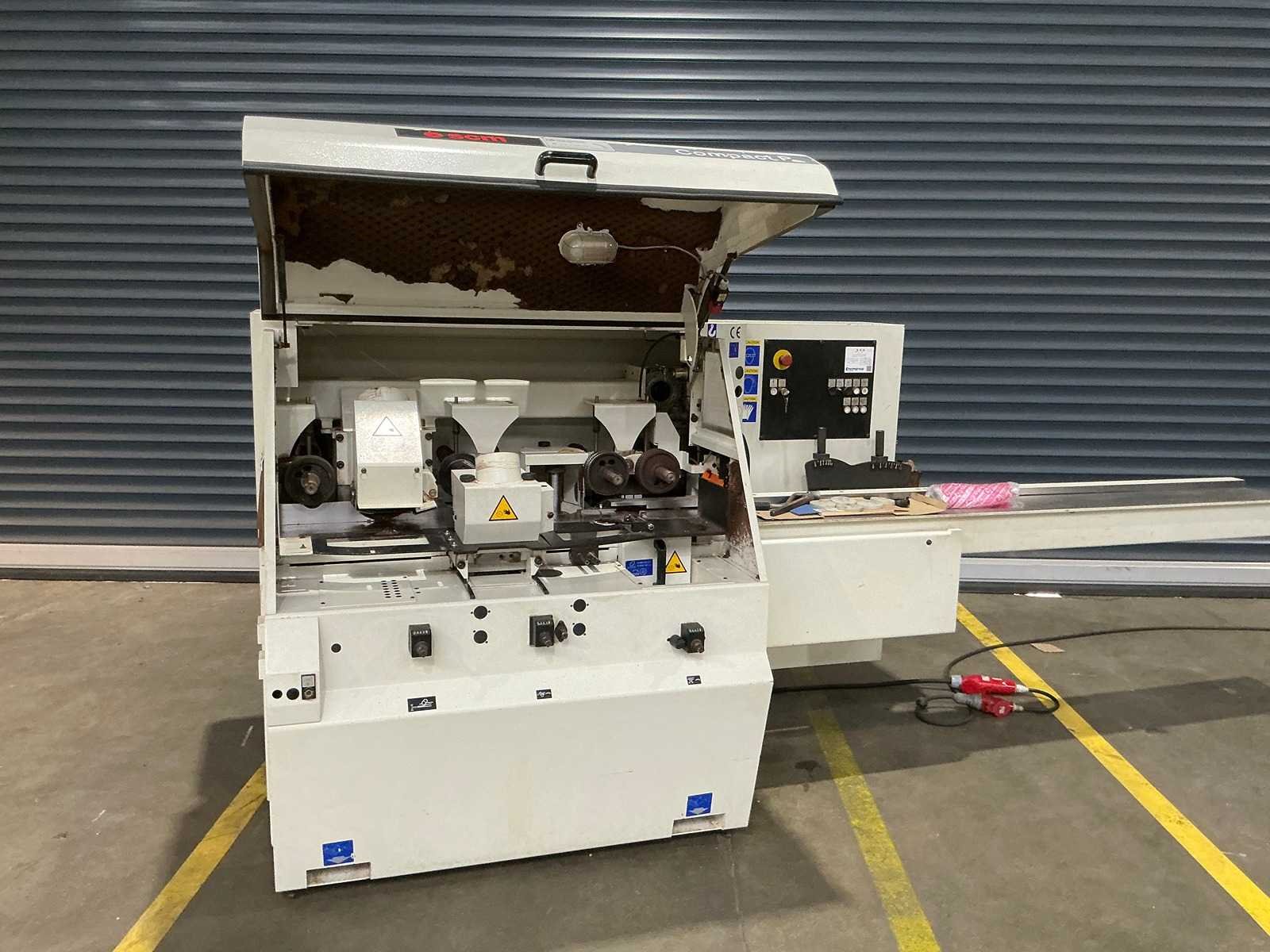 Min/max werkhoogte 6/120mm Min/max werkbreedte 25/230mm Minimale invoerlengte is 450mm Spindel snelheid 6000 Rpm Min/max tool diameter verticale spindel 120/165mm Exclusief schaafkoppen Motoren 1e spindel - Onder 5,5kW 2e/3e spindel - Link/Rechts 7,5kW 4e spindel - Boven 7,5kW Nee Merk: SCM Type: Compact P Bouwjaar: 2003 Serienummer: 021918 Spil Ø: 40mm Doorvoersnelheid: 6-12m/min Lengte aanvoerrollenbaan: 2480mm Machinegewicht: 1500kg Afmeting l: 3600mm Afmeting b: 1200mm Afmeting h: 1500mm