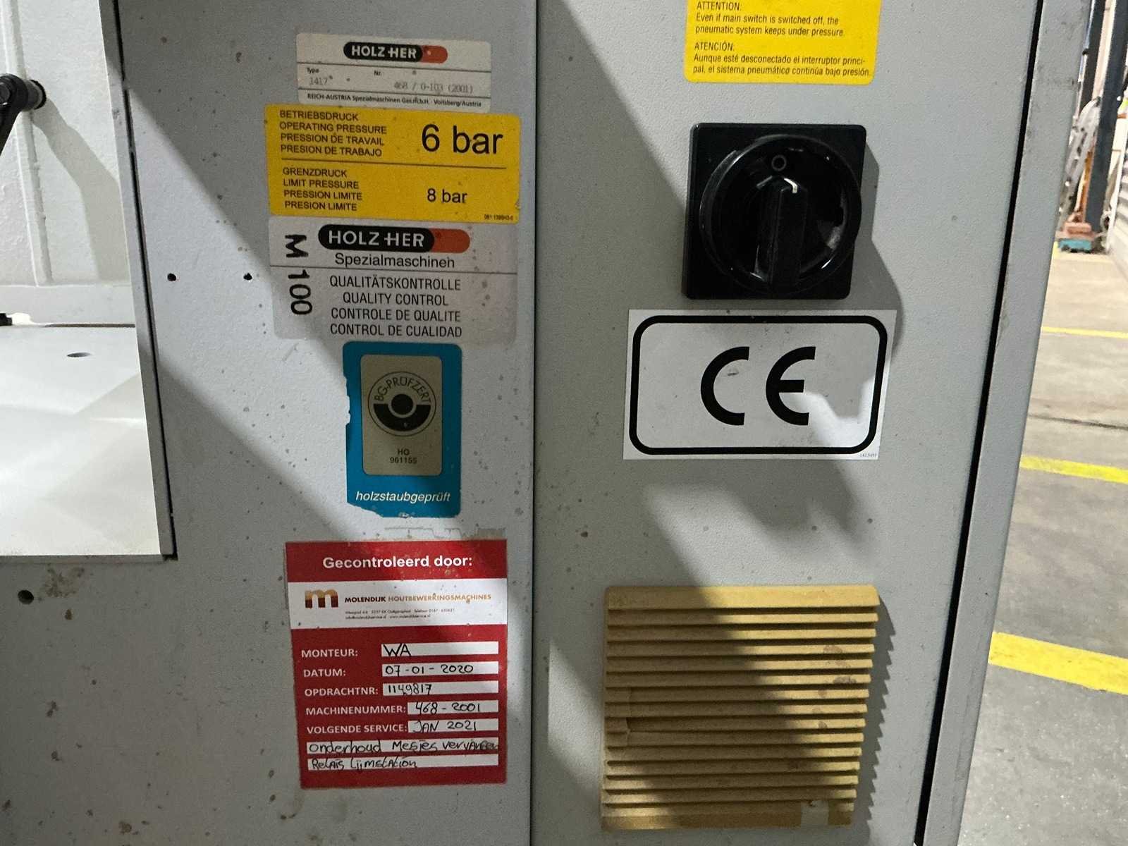 Nee Merk: Holz-her Type: Sprint 1417 Bouwjaar: 2001 Serienummer: 468/0-103 Machinegewicht: 1950kg Afmeting l: 5650mm Afmeting b: 1100mm Afmeting h: 1750mm