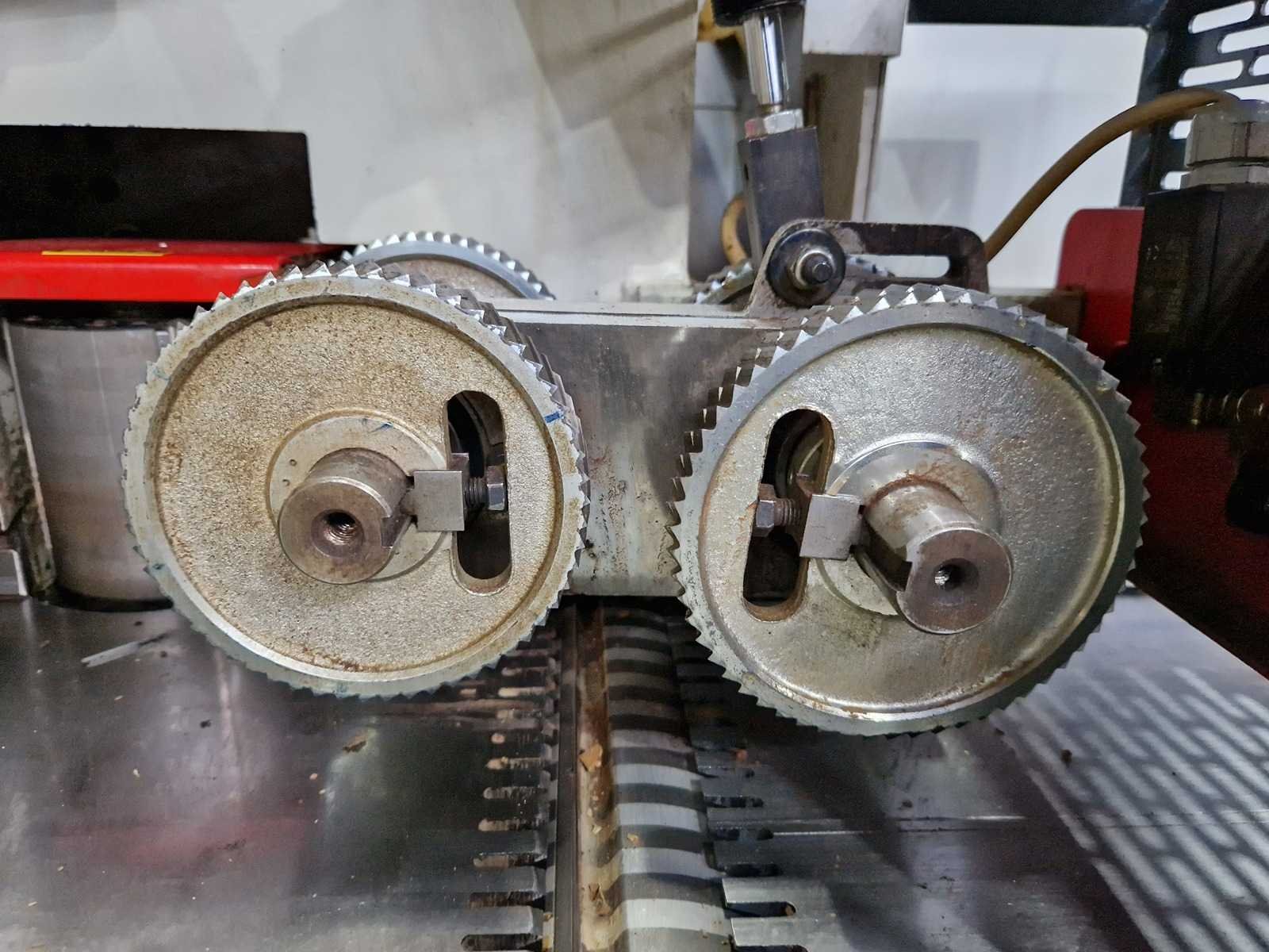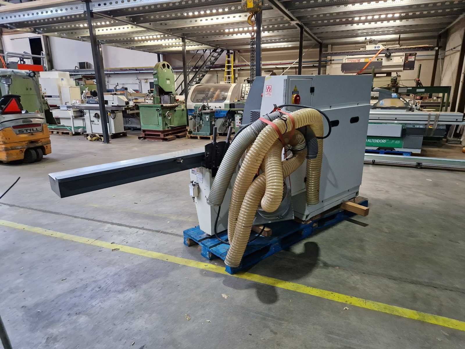 1e spindel onder 5,5PK 2e spindel, rechts 4PK 3e spindel, links 4PK 4e spindel, boven 5,5PK Tersa schaafkoppen Nee Merk: Futura Type: Modul 4 - 220 S Bouwjaar: 2000 Schaafbreedte: 220mm Schaafhoogte: 120mm Spil Ø: 40mm Lengte aanvoerrollenbaan: 2250mm Aansluiting: 380V Machinegewicht: 1500kg Afmeting l: 3400mm Afmeting b: 1100mm Afmeting h: 1600mm