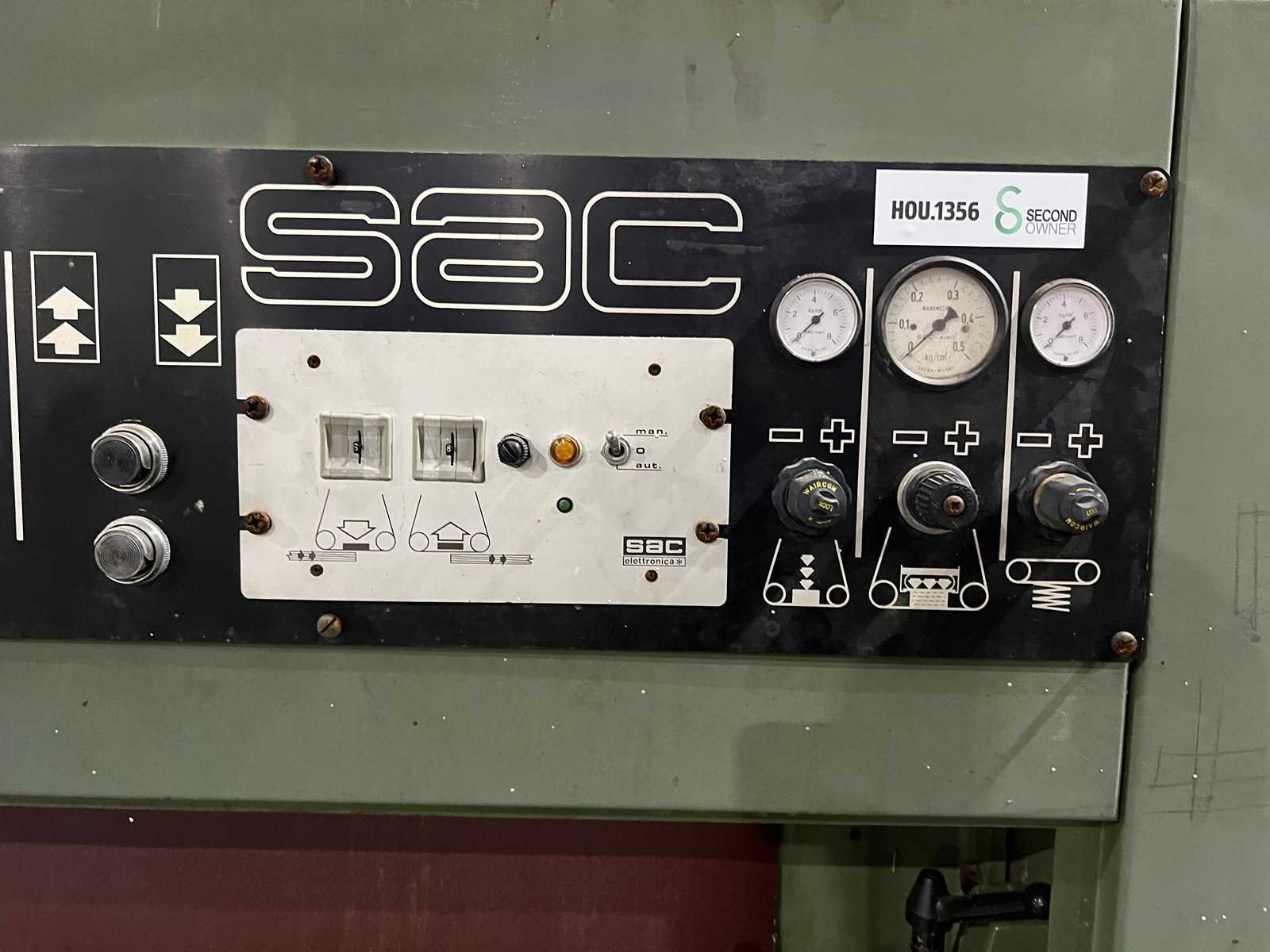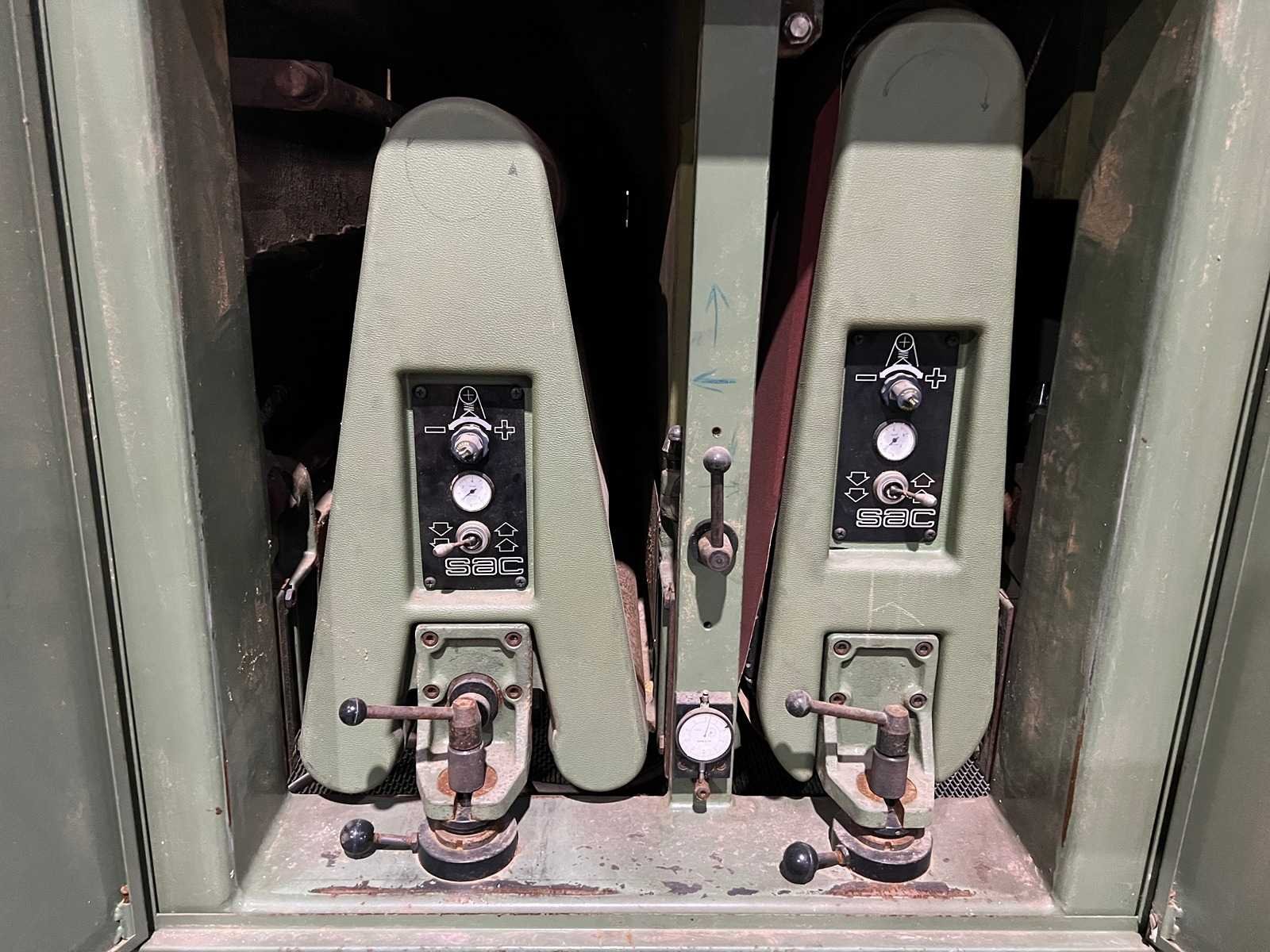 1e schuuraggregaat Contactrol 254mm Motor 15kW 2e schuuraggregaat Combi aggregaat met schuurpad Motor 11kW Snelheid 5-30 m/sec Maximale schuurbreedte 1000mm Nee Merk: SAC Type: CLS 1000 D Schuurhoogte max.: 170mm Schuurband afm. l: 1030mm Schuurband afm. b: 1900mm Aansluiting: 380V Machinegewicht: 3250kg Afmeting l: 2000mm Afmeting b: 2000mm Afmeting h: 2000mm