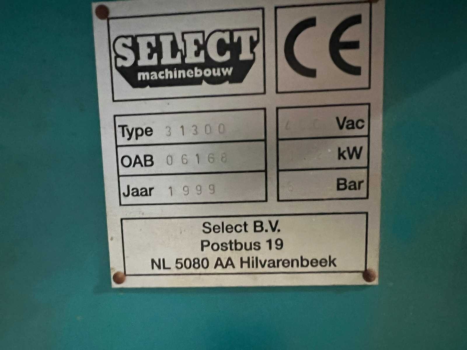 1.2kW 6 bar Nee Merk: Select Type: 31300 Bouwjaar: 1999 Serienummer: 06168