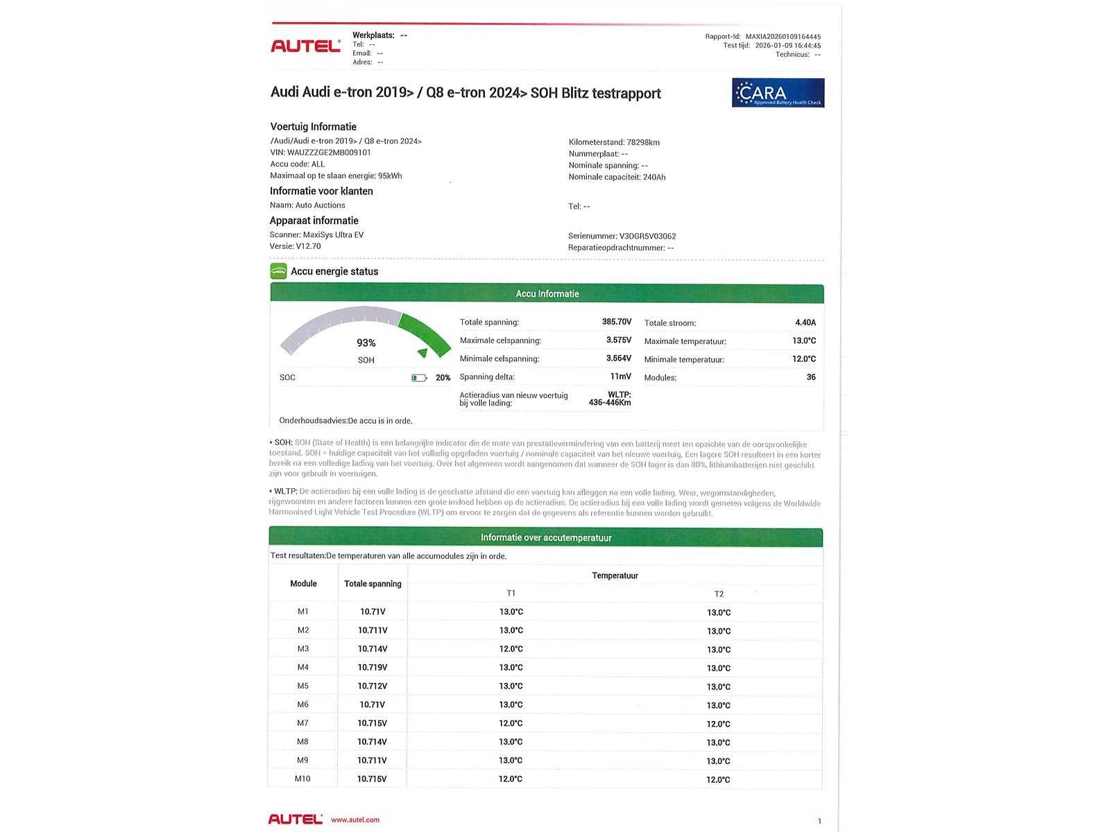 Duitse kenteken papieren. Indien gewenst kunnen wij het gehele import proces voor u verzorgen, RDW invoer, BPM taxatie, Douane afwikkeling, stalling etc. Voor deze auto zijn de totale invoerkosten inclusief de BPM €1.195.- Dus voor €1.195.- boven op uw aankoopprijs verzorgen wij het NL kenteken voor u. (This option is only for Dutch buyers) Voor vragen kunt u mailen naar info@auto-auctions.nl No Kenteken: Duitse Kenteken Papieren Merk: Audi Model: e-tron Type: 55 quattro 95 kWh Afgelezen kilometerstand: 78295km Vermogen (kW): 300kW Brandstof: Elektrisch Chassisnummer: WAUZZZGE2MB009101 Datum eerste toelating: 23-11-2020 Vermogen (pk): 408hp Aandrijving: Vierwielaandrijving Aantal zitplaatsen: 5 Kleur: Mythical Black Metallic Transmissie: Automaat Aantal deuren: 5 Aantal sleutels: 2 Velgmaat: 20 Carrosserie: SUV Nationaliteit documenten: Duitse Kenteken Papieren Onderhoudshistorie: Digitaal Volledig Aanwezig Start en rijdt: Ja oplaadkabel : Aanwezig Luchtvering: true Vierwielaandrijving 4x4: true