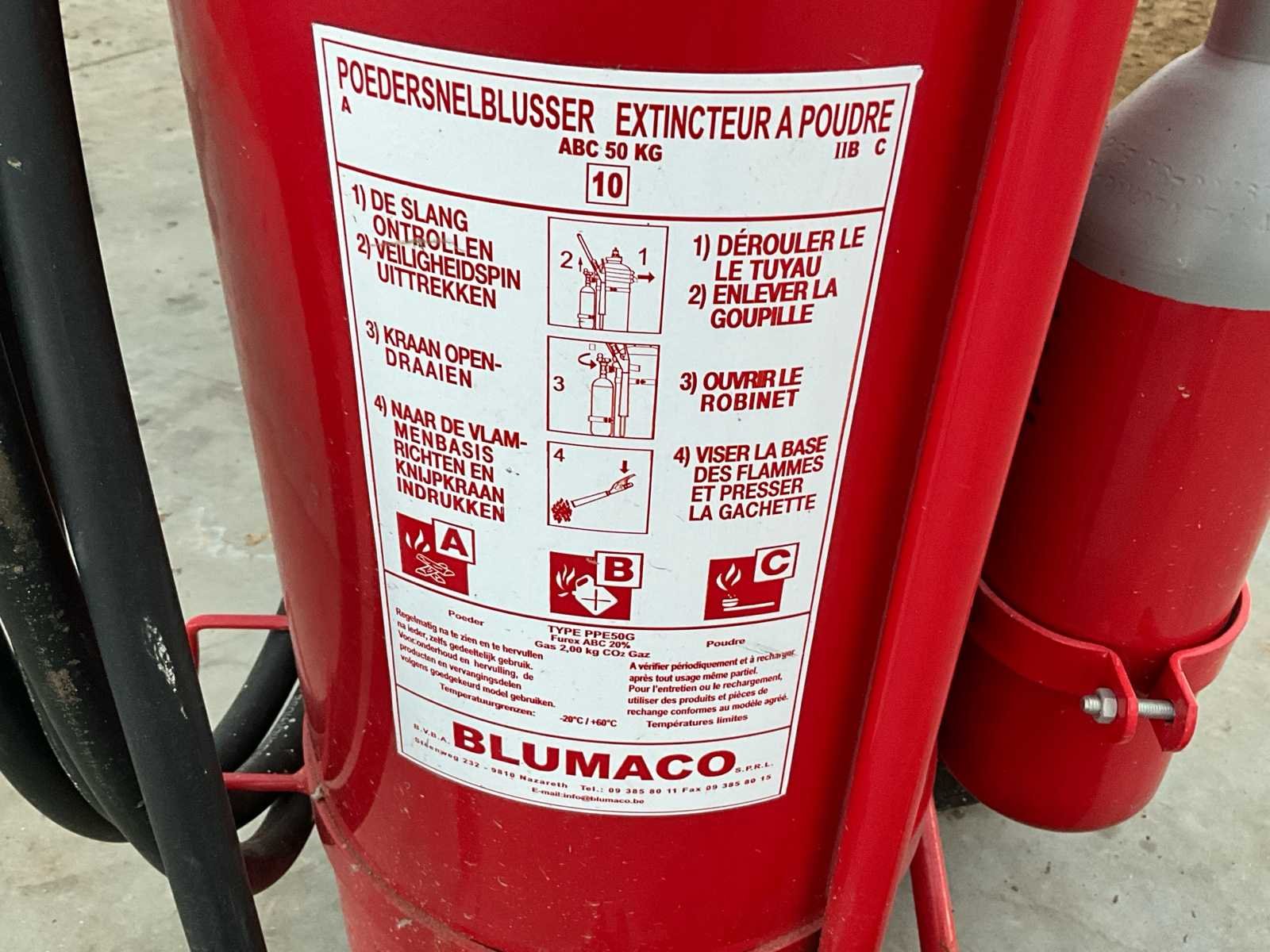 Poederbrandblusser in werkende staat. Gekeurd tot november 2026. No Product type: PPE50G Kleur: Rood Gewicht: 50