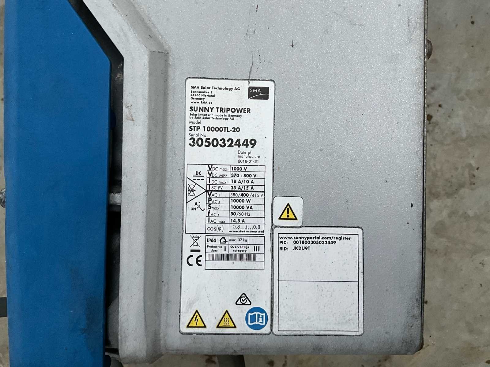 In werkende staat. No Merk: SMA Type: STP 10000TL-20 Serienummer: 305032449 Bouwjaar: 2016 Vermogen: 10kW 3-fase: true