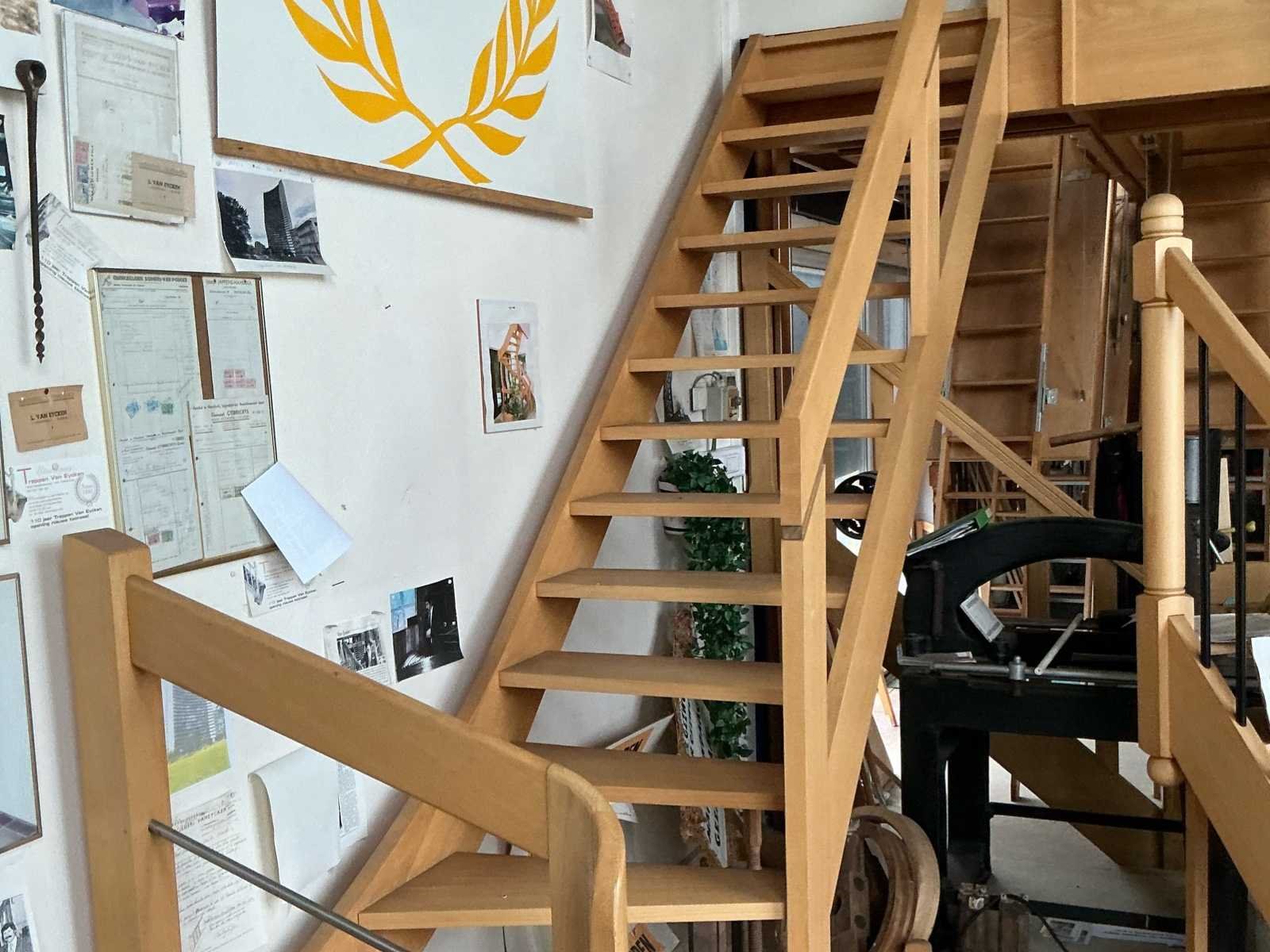Nieuwe beuken trap met leuning en overloop leuning. (15 treden) zie foto’s) unieke kans Verkoop wegens overlijden zaakvoerder en stopzetting bedrijf. No Merk: Beuk trap met 15 treden en leuning. Type: Nieuw