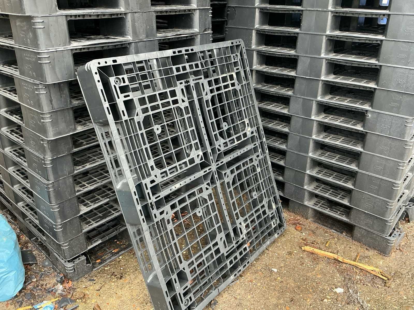 100cm op 120cm, schatting tussen de 400 en 450 stuks goede paletten en beschadigde door elkaar. No Afmeting l: 1200mm Afmeting b: 1000mm Kunststof: true