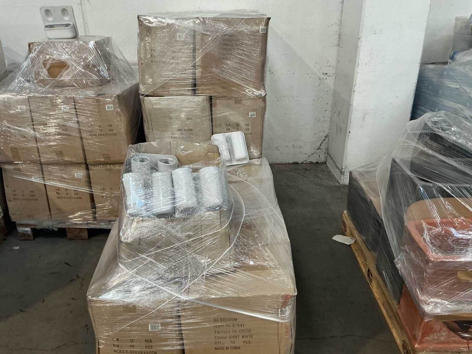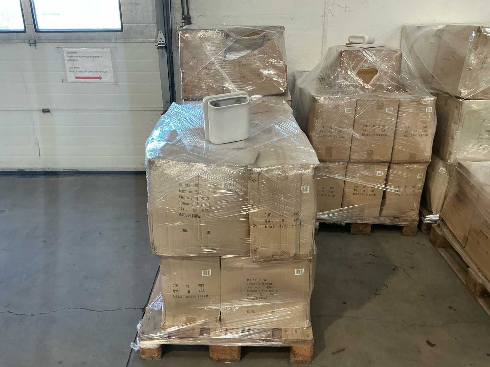 In totaal 5 palletten No Bestaande uit: 3 soorten keramieken vazen 1e: Pallet van 30 dozen à 12 stuks 2e: Pallet van 9 dozen à 12 stuks 3e: Pallet van 28 dozen à 12 stuks