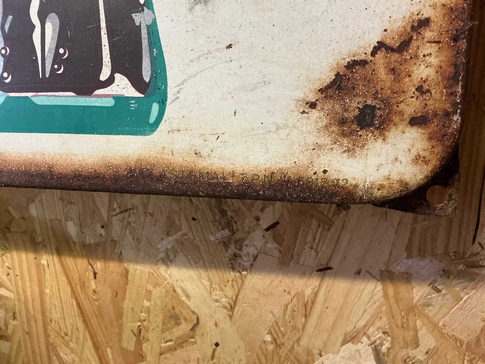 Origineel emaille reclamebord van het Belgische biermerk Palm Speciale, geproduceerd door Emaillerie Belge op 4 januari 1999. Het bord is in zeer goede staat, met heldere kleuren en minimale gebruikssporen (lichte roest rond schroefgaatjes). ✔ Authentiek geëmailleerd metaal ✔ Formaat: 40cm breedte x 1200cm hoogte ✔ Perfect voor mancave, café Nee Merk: Emaillerie Belge Lengte: 1450 Breedte: 450