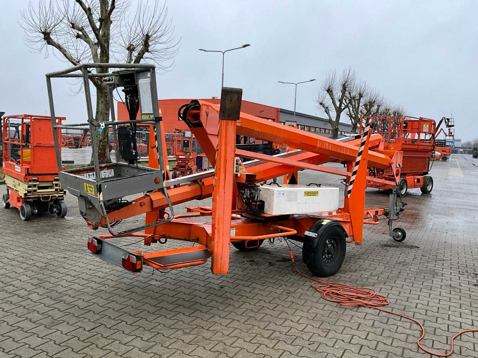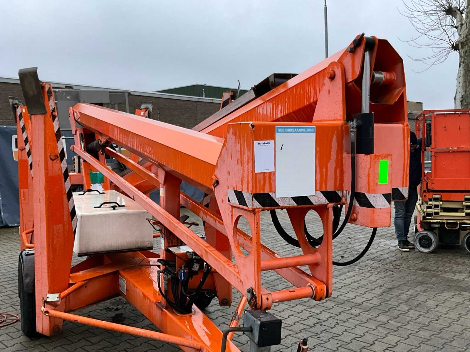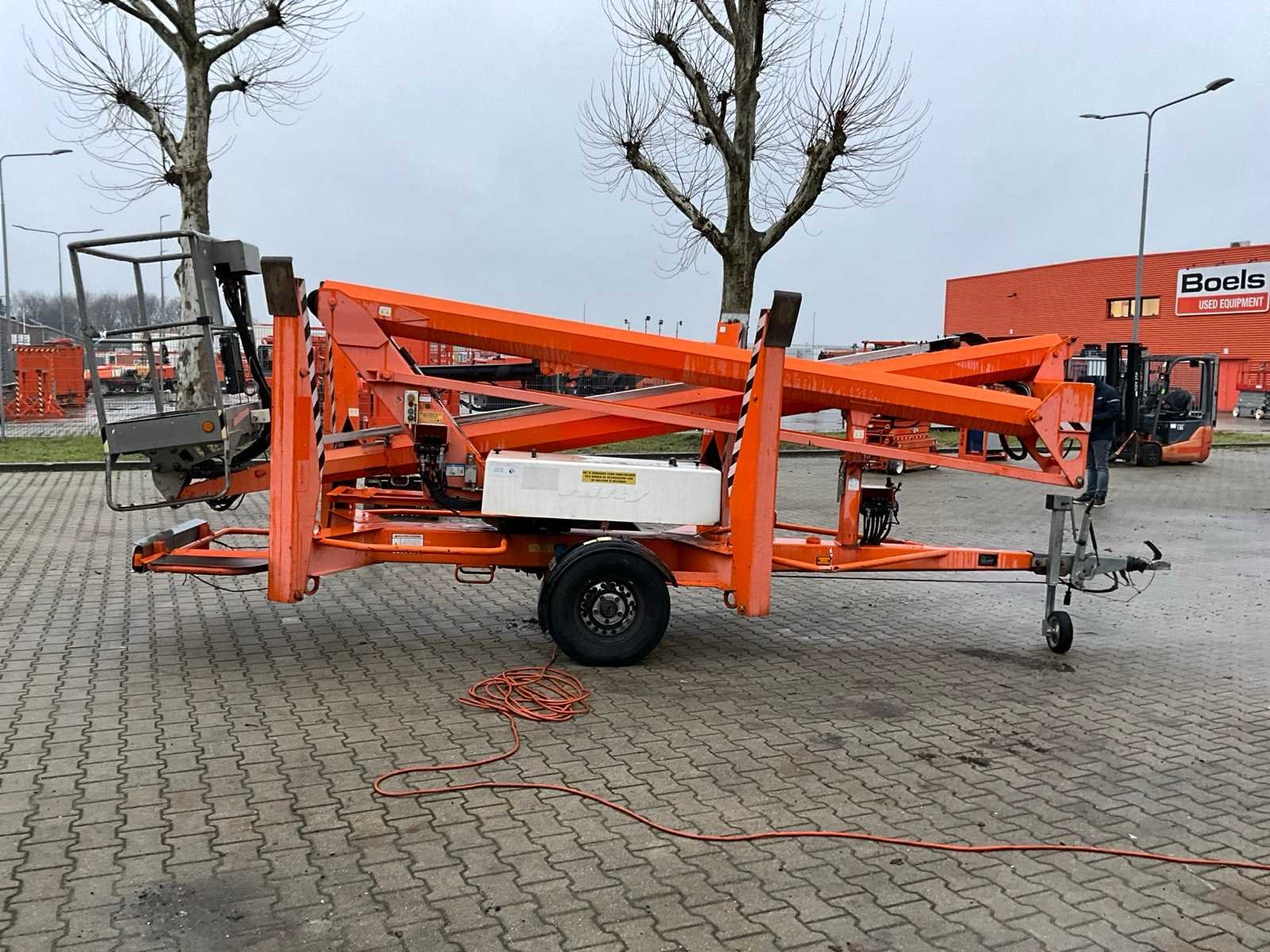 Knik telescoop aanhangwagen hoogwerker; enkel assige aanhangwagen; 230 Volt elektrische bediening; kooibediening; platform vloerhoogte 15100 mm; zonder uurregistratie aflezing; 4x hydraulische neerklapbare stempelvoet; afstempelvlak 4400x4400 mm; oplooprem; neuswiel; chassisnummer SLN170HACCM023282; working condition; (de koper dient bij transport over de weg zelf te voorzien in een geldig kenteken; een 7 of 9 polige aansluitstekker of verloopstuk met kabel (verlengsnoer kan ter plaatse tegen betaling aangekocht worden); eventueel extra lichtbalk; Belgische kentekenpapieren; gelijkvormigheidsattest; (1-QDB-163) Nee Merk: Niftylift Type: Nifty 170 HAC Bouwjaar: 2012 Serienummer: 17-23282 Elektrisch: true Telescoop hoogwerker: true Knikarm hoogwerker: true Werkhoogte: 17100mm Horizontale rijkwijdte: 8700mm Plateau afm. l: 900mm Plateau afm. b: 600mm Platform capaciteit: 200kg Eigen gewicht: 2000kg Totale afmeting L: 6200mm Totale afmeting Breedte: 1650mm Totale afmeting Hoogte: 2150mm