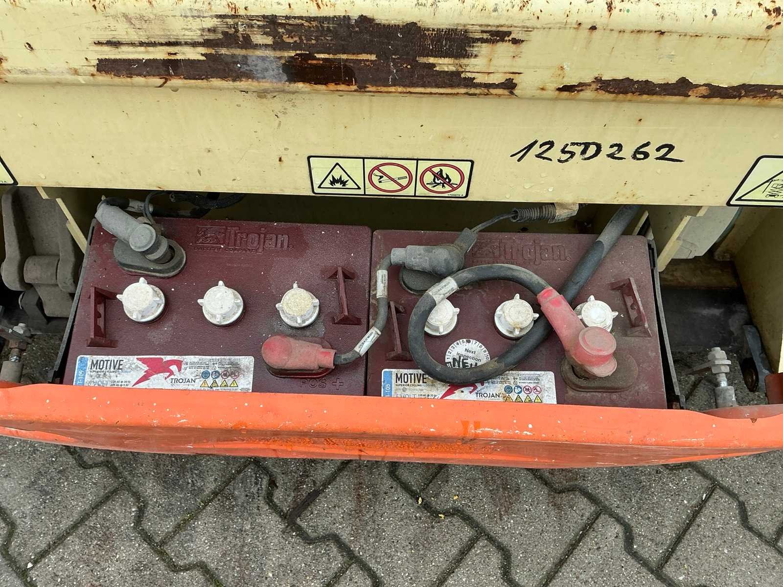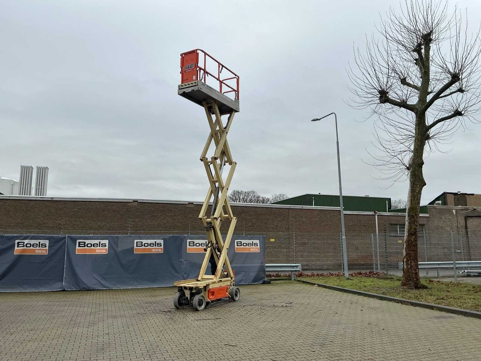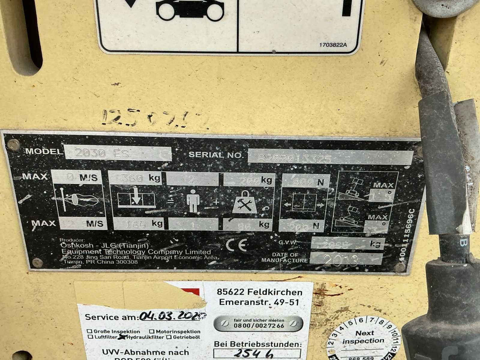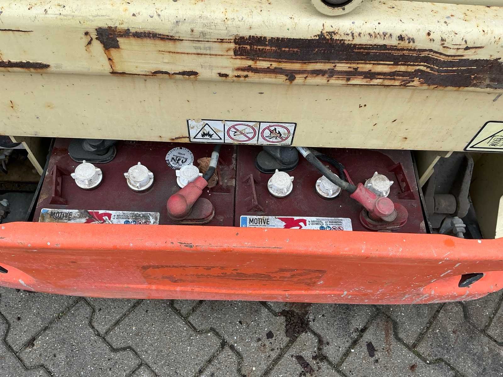 Platform vloerhoogte 6100 mm; uitschuifbaar platform afmeting circa 3100x670 mm; interne acculader 230 Volt; kooibediening; 230 Volt stroom aansluiting platform; transporthoogte circa 1800 mm; working condition Nee Merk: JLG Type: 2030ES Bouwjaar: 2014 Serienummer: B200013325 Elektrisch: true Schaarhoogwerker: true Werkhoogte: 8100mm Plateau afm. l: 2200mm Plateau afm. b: 670mm Platform capaciteit: 360kg Accu lader: true Afgelezen urenstand: 269 Eigen gewicht: 2100kg Totale afmeting L: 2300mm Totale afmeting Breedte: 760mm Totale afmeting Hoogte: 2250mm