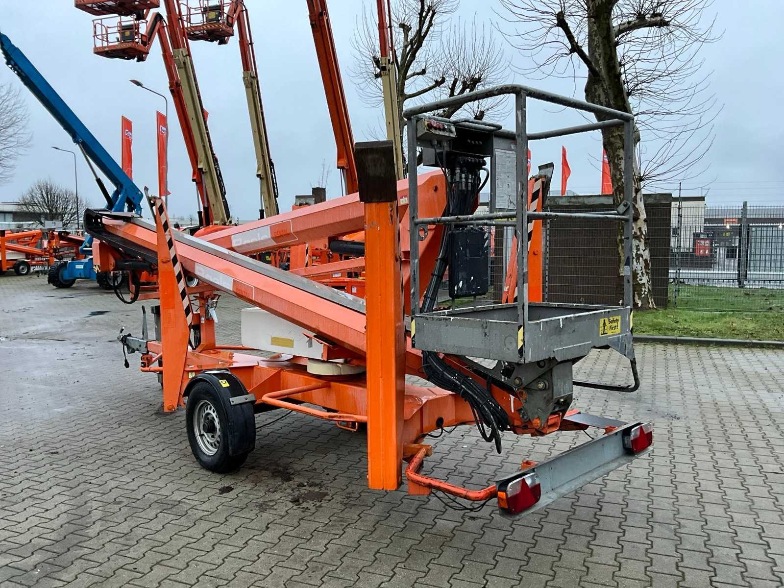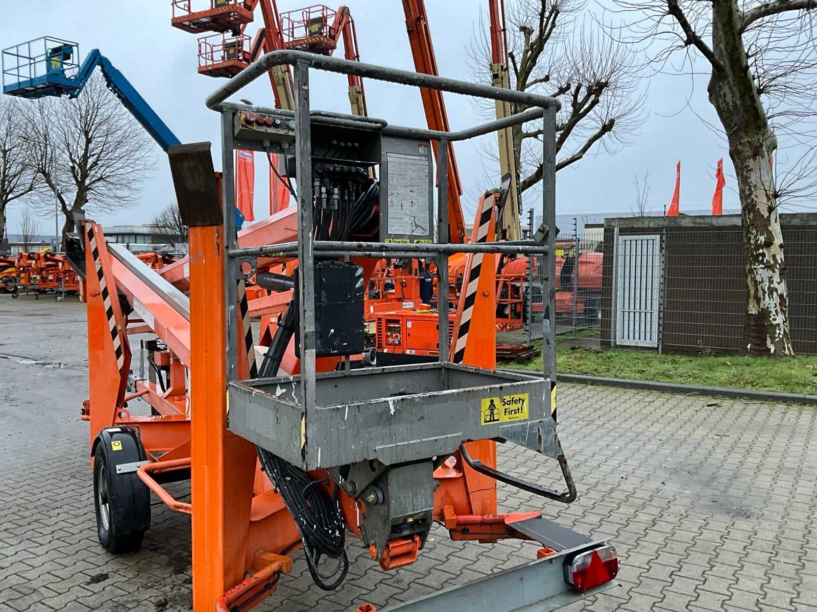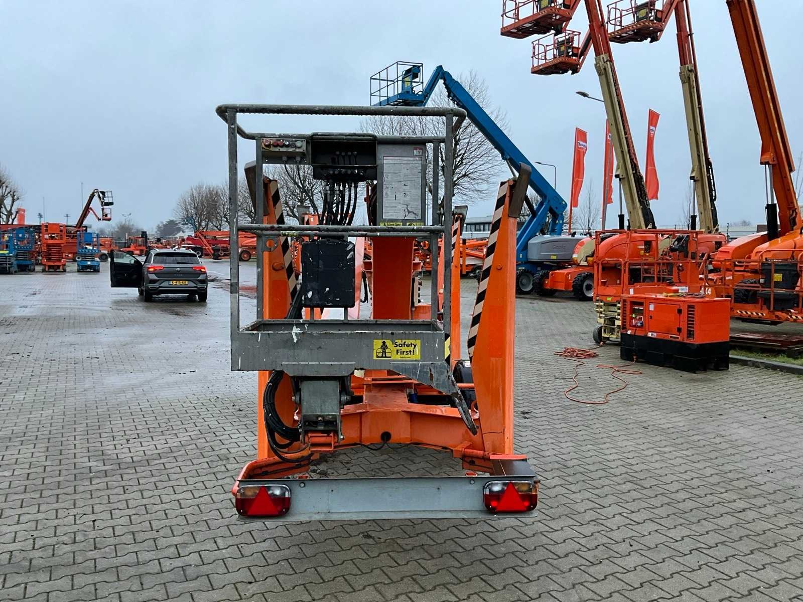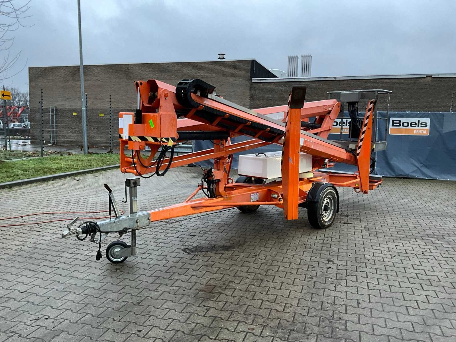 Knik telescoop aanhangwagen hoogwerker; enkel assige aanhangwagen; 230 Volt elektrische bediening; kooibediening; platform vloerhoogte 15100 mm; zonder uurregistratie aflezing; 4x hydraulische neerklapbare stempelvoet; afstempelvlak 4400x4400 mm; oplooprem; neuswiel; chassisnummer SLN170HACDM024969; working condition; (de koper dient bij transport over de weg zelf te voorzien in een geldig kenteken; een 7 of 9 polige aansluitstekker of verloopstuk met kabel (verlengsnoer kan ter plaatse tegen betaling aangekocht worden); eventueel extra lichtbalk; Belgische kentekenpapieren; gelijkvormigheidsattest; (1-QDX-299) Nee Merk: Niftylift Type: Nifty 170 HAC Bouwjaar: 2013 Serienummer: 17-24969 Elektrisch: true Telescoop hoogwerker: true Knikarm hoogwerker: true Werkhoogte: 17100mm Horizontale rijkwijdte: 8700mm Plateau afm. l: 900mm Plateau afm. b: 600mm Platform capaciteit: 200kg Eigen gewicht: 2000kg Totale afmeting L: 6200mm Totale afmeting Breedte: 1650mm Totale afmeting Hoogte: 2150mm