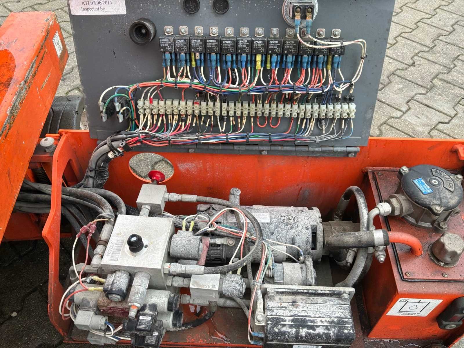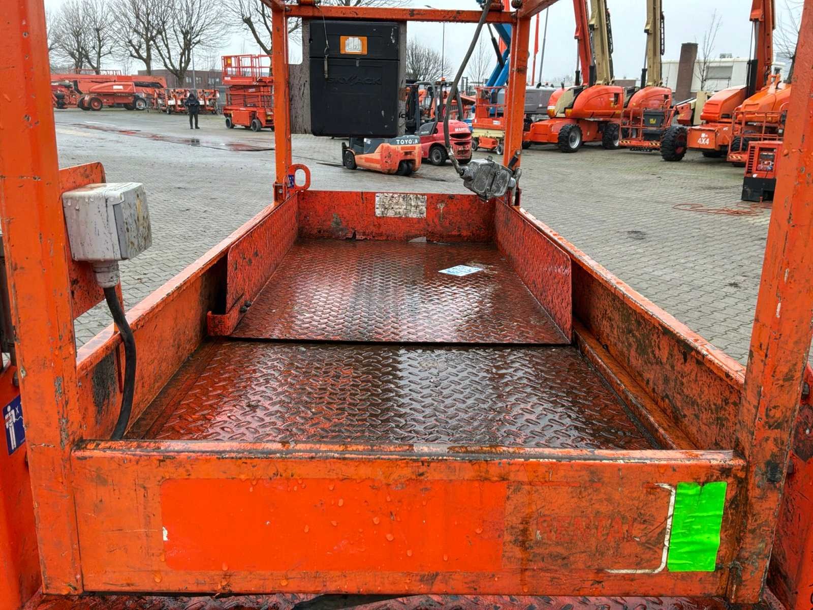Gebruik: binnen; platform vloerhoogte 5800 mm; uitschuifbaar platform afmeting circa 2500x650 mm; interne acculader 230 Volt; kooibediening; 230 Volt stroom aansluiting platform; transporthoogte circa 1750 mm; working condition Nee Merk: SkyJack Type: SJ III 3219 Bouwjaar: 2015 Serienummer: 22085849 Elektrisch: true Schaarhoogwerker: true Werkhoogte: 7800mm Plateau afm. l: 1600mm Plateau afm. b: 650mm Platform capaciteit: 227kg Accu lader: true Afgelezen urenstand: 278 Eigen gewicht: 1350kg Totale afmeting L: 1810mm Totale afmeting Breedte: 800mm Totale afmeting Hoogte: 2110mm