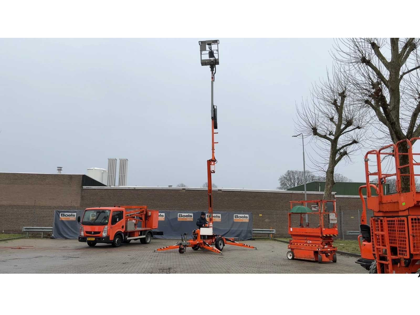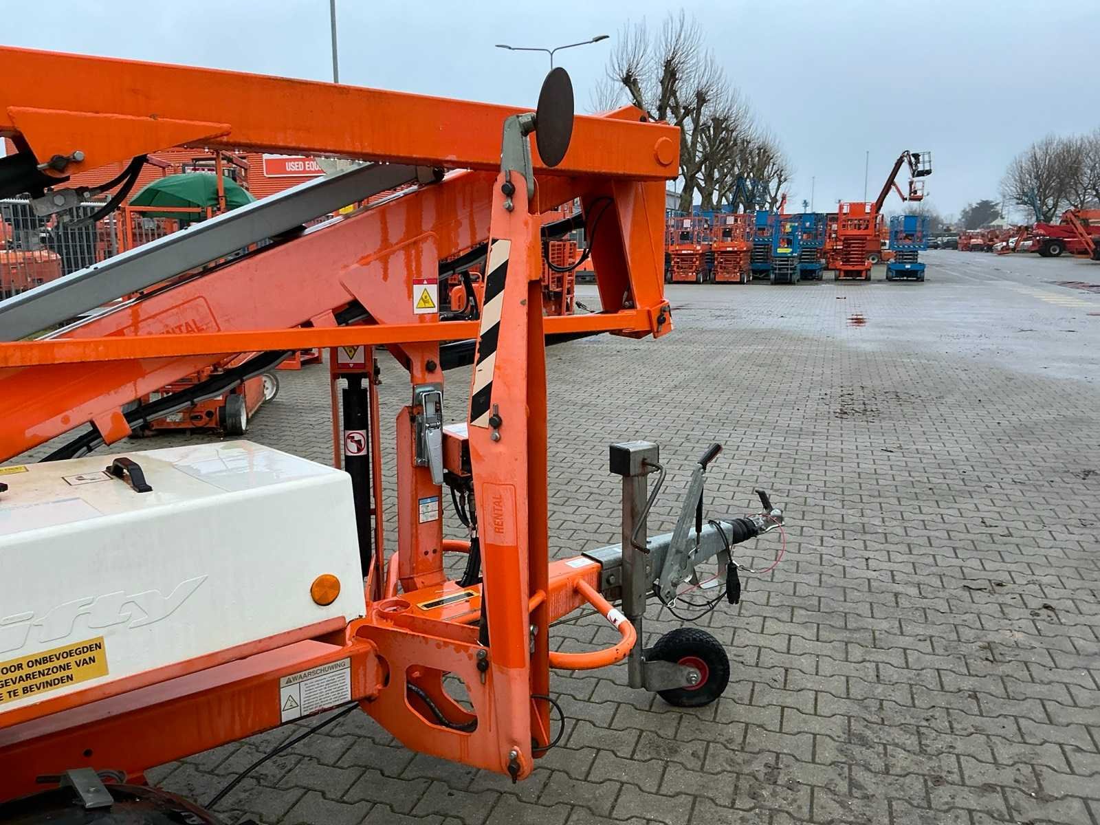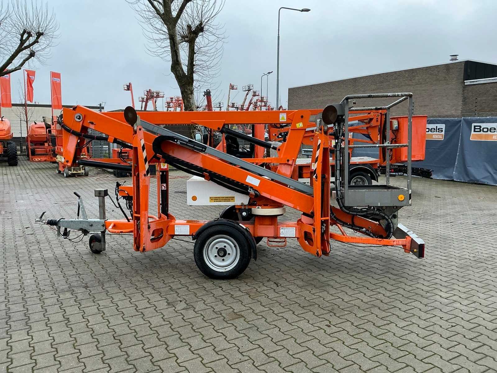 Knik telescoop hoogwerker aanhangwagen; enkel assige aanhangwagen; wielas in breedte verstelbaar; platform vloerhoogte 10200 mm; 230 Volt elektrische bediening; kooibediening; 4x hydraulische neerklapbare stempelvoet; afstempelvlak 3550x3550 mm; oplooprem; neuswiel; chassisnummer SLN120TACEM028910; working condition; (de koper dient bij transport over de weg zelf te voorzien in een geldig kenteken; een 7 of 9 polige aansluitstekker of verloopstuk met kabel (verlengsnoer kan ter plaatse tegen betaling aangekocht worden); eventueel extra lichtbalk); Belgische kentekenpapieren; gelijkvormigheidsattest; (1-QFE-687) Nee Merk: Niftylift Type: Nifty 120 TAC Bouwjaar: 2014 Elektrisch: true Telescoop hoogwerker: true Knikarm hoogwerker: true Werkhoogte: 12200mm Horizontale rijkwijdte: 5000mm Plateau afm. l: 900mm Plateau afm. b: 600mm Platform capaciteit: 200kg Eigen gewicht: 1400kg Totale afmeting L: 4500mm Totale afmeting Breedte: 1500mm Totale afmeting Hoogte: 1900mm