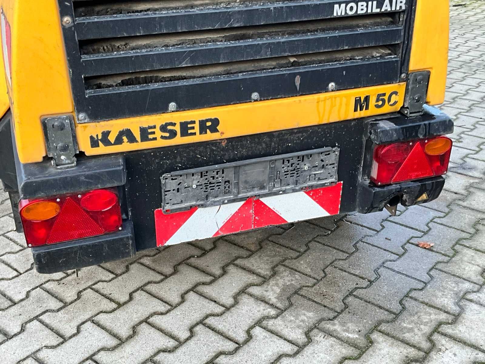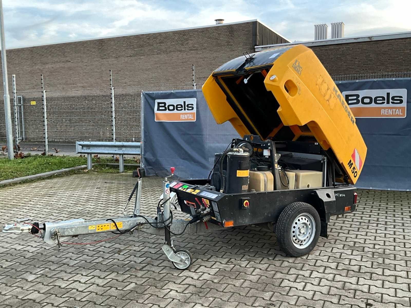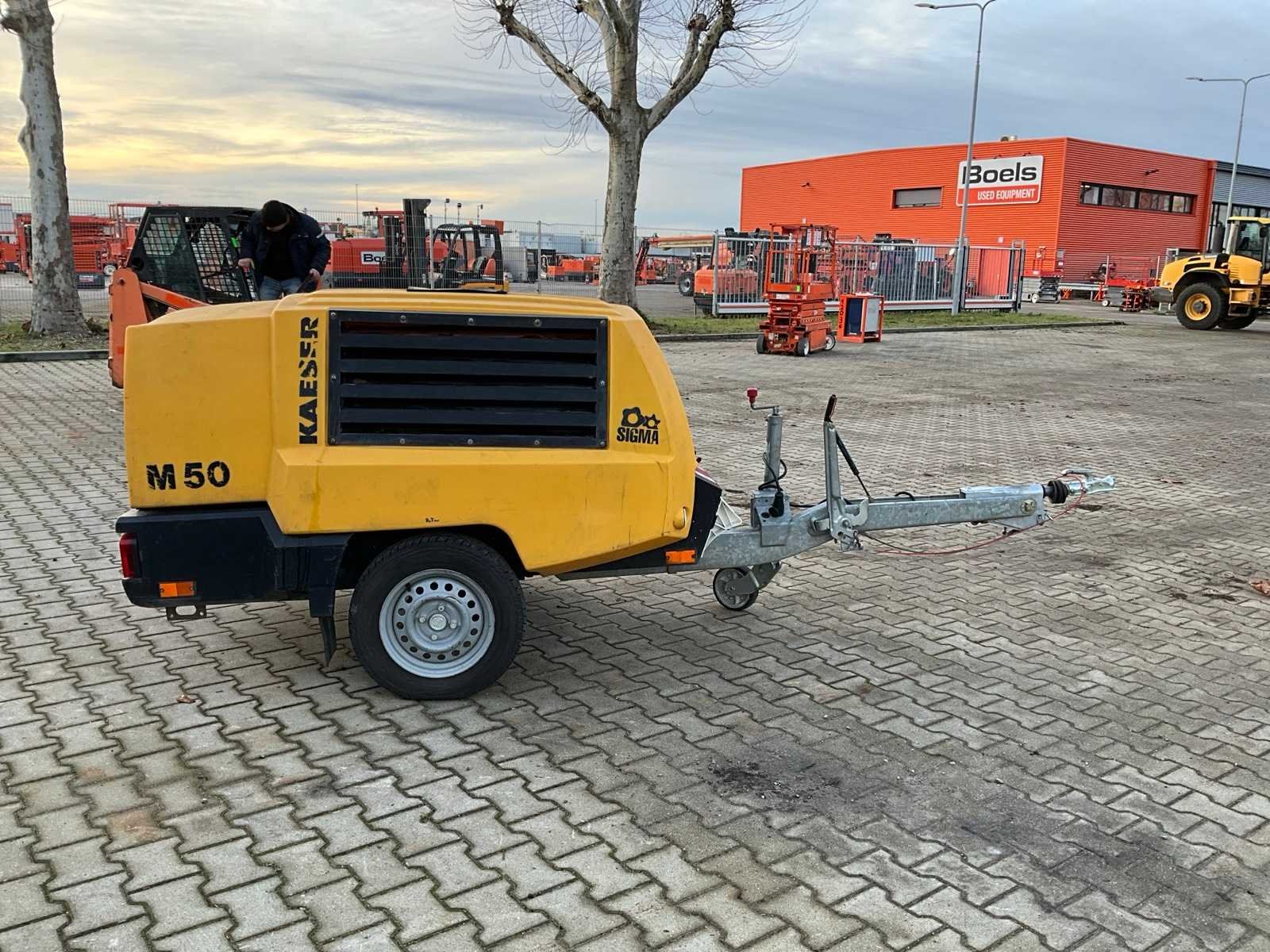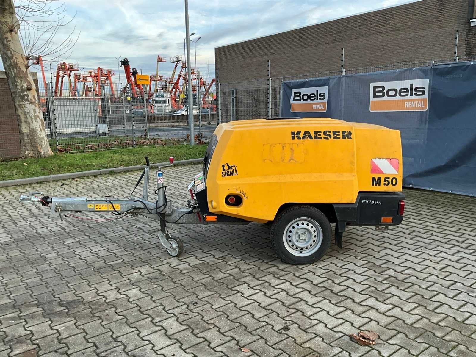 Lengte 3700 mm; breedte 1450 mm; hoogte 1400 mm; aanedreven door Kubota 4 cilinder dieselmotor; 32,5 kW; capaciteit 7 Bar; luchtstroom 5000 liter / minuut; afgelezen urenstand 1554 uur; opklapbare trekboom; oplooprem; neuswiel; working condition; (de koper dient bij transport over de weg zelf te voorzien in een geldig kenteken; een 7 of 9 polige aansluitstekker of verloopstuk met kabel (verlengsnoer kan ter plaatse tegen betaling aangekocht worden); eventueel extra lichtbalk); Duitse kentekenpapieren; zonder gelijkvormigheidsattest; (M-QQ181) Nee Merk: Kaeser Type: M50PE Bouwjaar: 2014 Chassisnummer: WKA0F0851E5080555 Aantal assen: 1 Ledig gewicht: 850kg