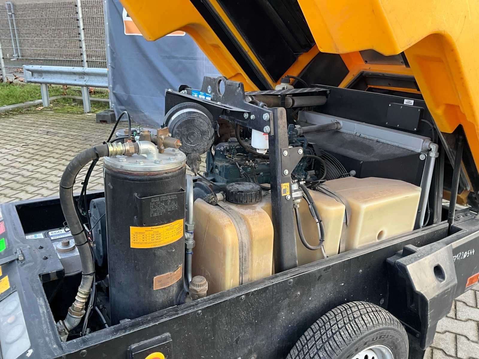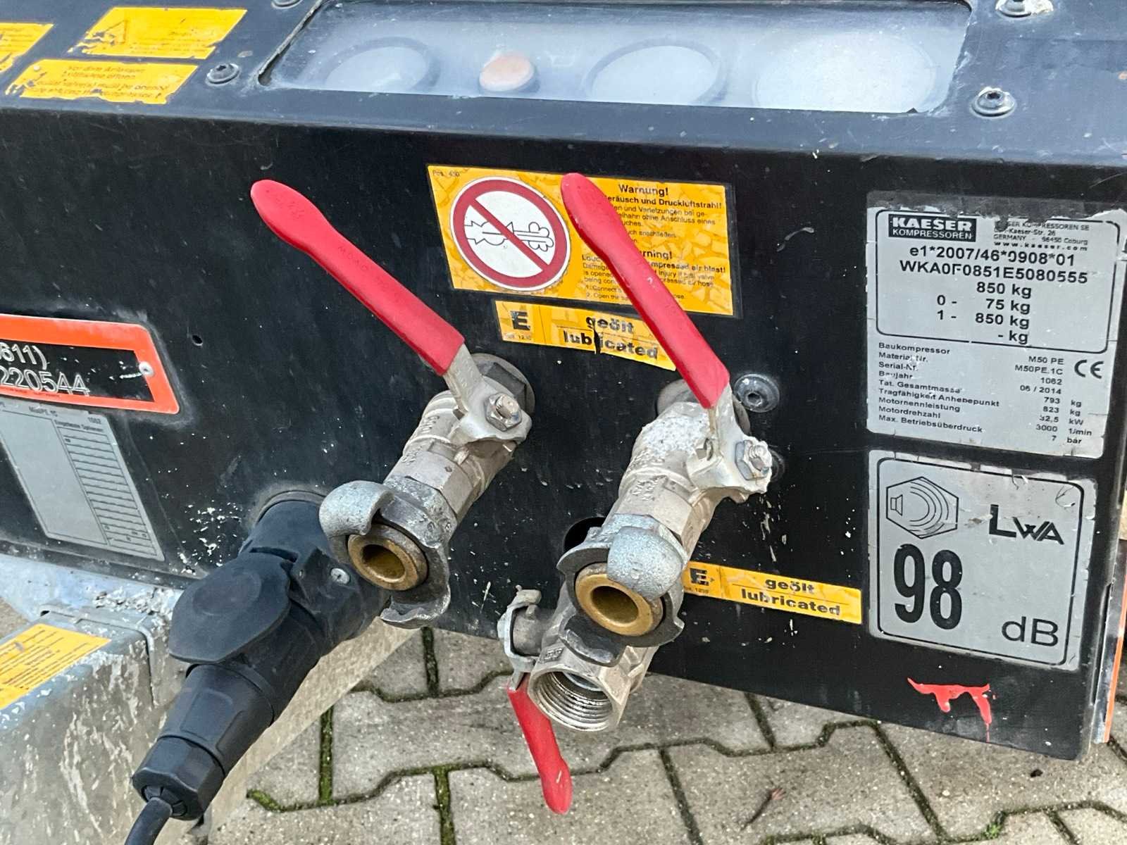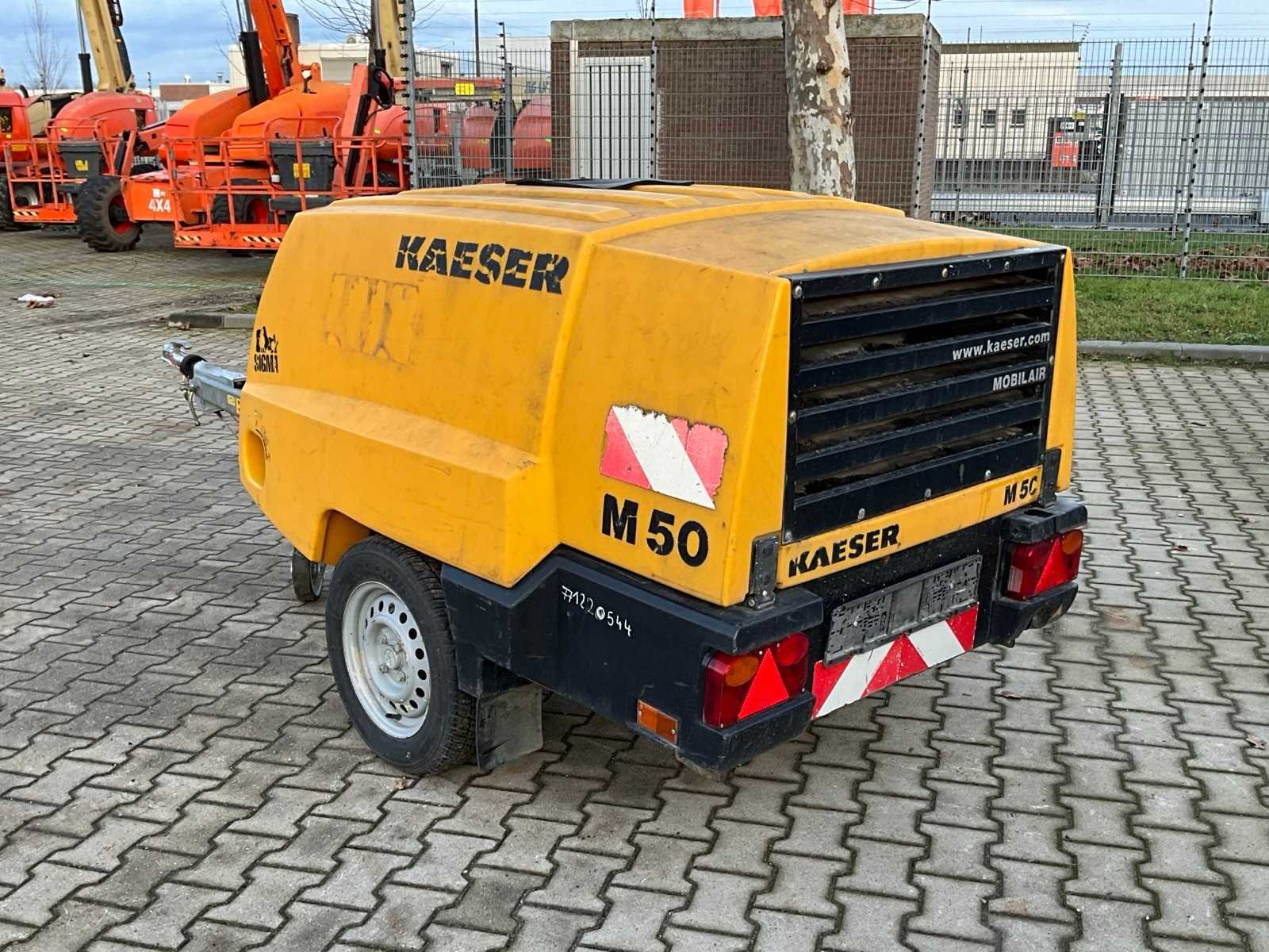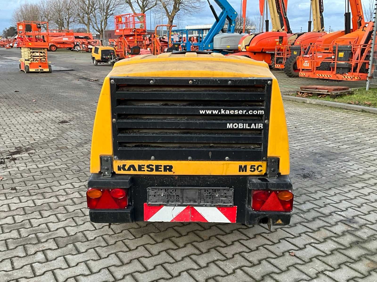 Lengte 3700 mm; breedte 1450 mm; hoogte 1400 mm; aanedreven door Kubota 4 cilinder dieselmotor; 32,5 kW; capaciteit 7 Bar; luchtstroom 5000 liter / minuut; afgelezen urenstand 1554 uur; opklapbare trekboom; oplooprem; neuswiel; working condition; (de koper dient bij transport over de weg zelf te voorzien in een geldig kenteken; een 7 of 9 polige aansluitstekker of verloopstuk met kabel (verlengsnoer kan ter plaatse tegen betaling aangekocht worden); eventueel extra lichtbalk); Duitse kentekenpapieren; zonder gelijkvormigheidsattest; (M-QQ181) Nee Merk: Kaeser Type: M50PE Bouwjaar: 2014 Chassisnummer: WKA0F0851E5080555 Aantal assen: 1 Ledig gewicht: 850kg