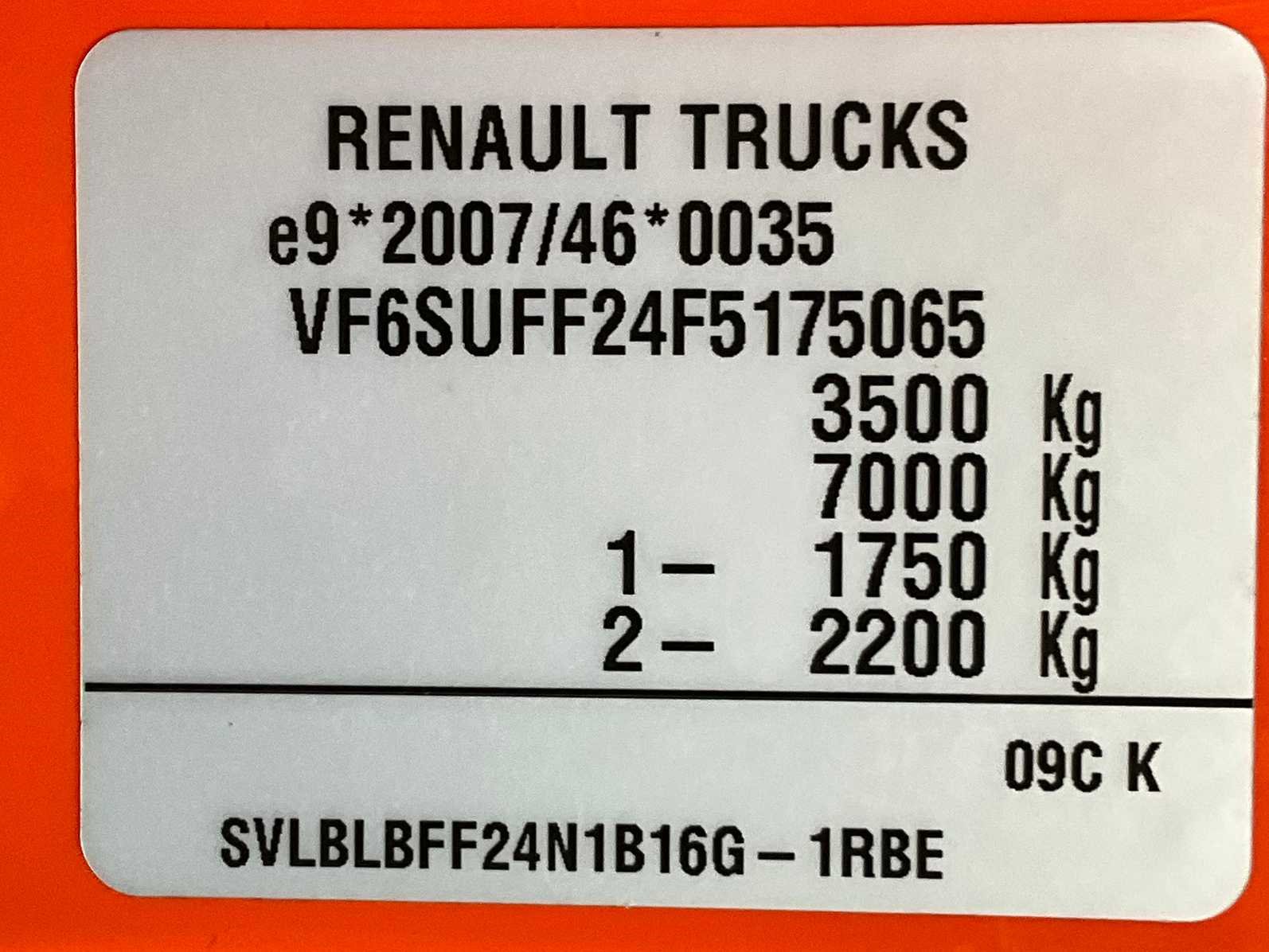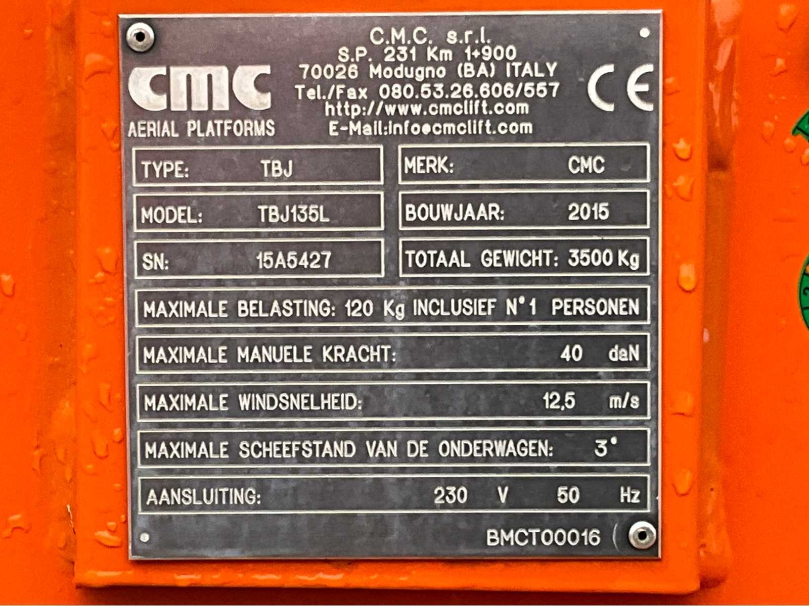 PTO aangedreven hoogwerker; elektrische ramen: centrale deurvergrendeling; radio cd speler; (2015) CMC hoogwerker pakket type TBJ135L; Maximale werkhoogte 13500 mm; platform vloerhoogte 11500 mm; maximale reikwijdte 5100 mm; platform afmeting 850x600 mm; platformbelasting 120 kg; kooibediening; transport lengte 7200 mm; transportbreedte 2200 mm; transporthoogte 2300 mm; working condition; Nederlandse kentekenpapieren; zonder gelijkvormigheidsattest; No Kenteken: VP-205-S Merk: Renault Type: Maxity Bouwjaar: 2015 Chassisnummer: VF6SUFF24F5175065 Afgelezen kilometerstand: 40419km Cilinderinhoud: 2488cc Vermogen (kW): 90kW Brandstof: diesel Datum eerste toelating: 2015-07-06 Datum eerste toelating (NL): 2015-07-06 APK vervaldatum: 2026-09-27 NAP status: Logisch Aandrijving: Achterwiel Transmissie: Handgeschakeld Aantal zitplaatsen: 3 Kleur: niet van toepassing Stuurwiel: Links Bruto BPM (NL): 9796 Rest BPM: 0 Aantal deuren: 2 Ledig gewicht: 3305kg Laadvermogen: 120kg Vermogen (pk): 122 Aantal cilinders: 4 Carrosserie: Hoogwerker Emissieklasse: 5 Startinformatie: Start en rijd Maximaal trekgewicht ongeremd: 750
