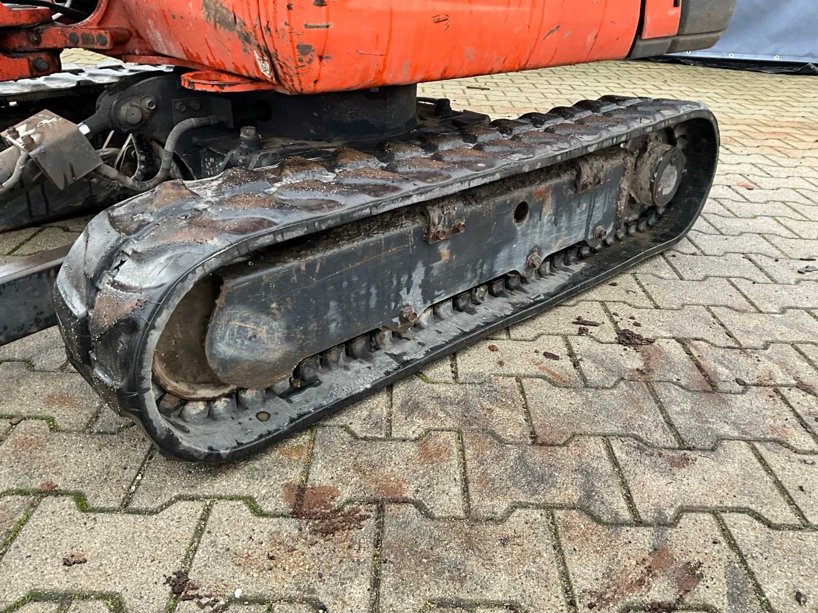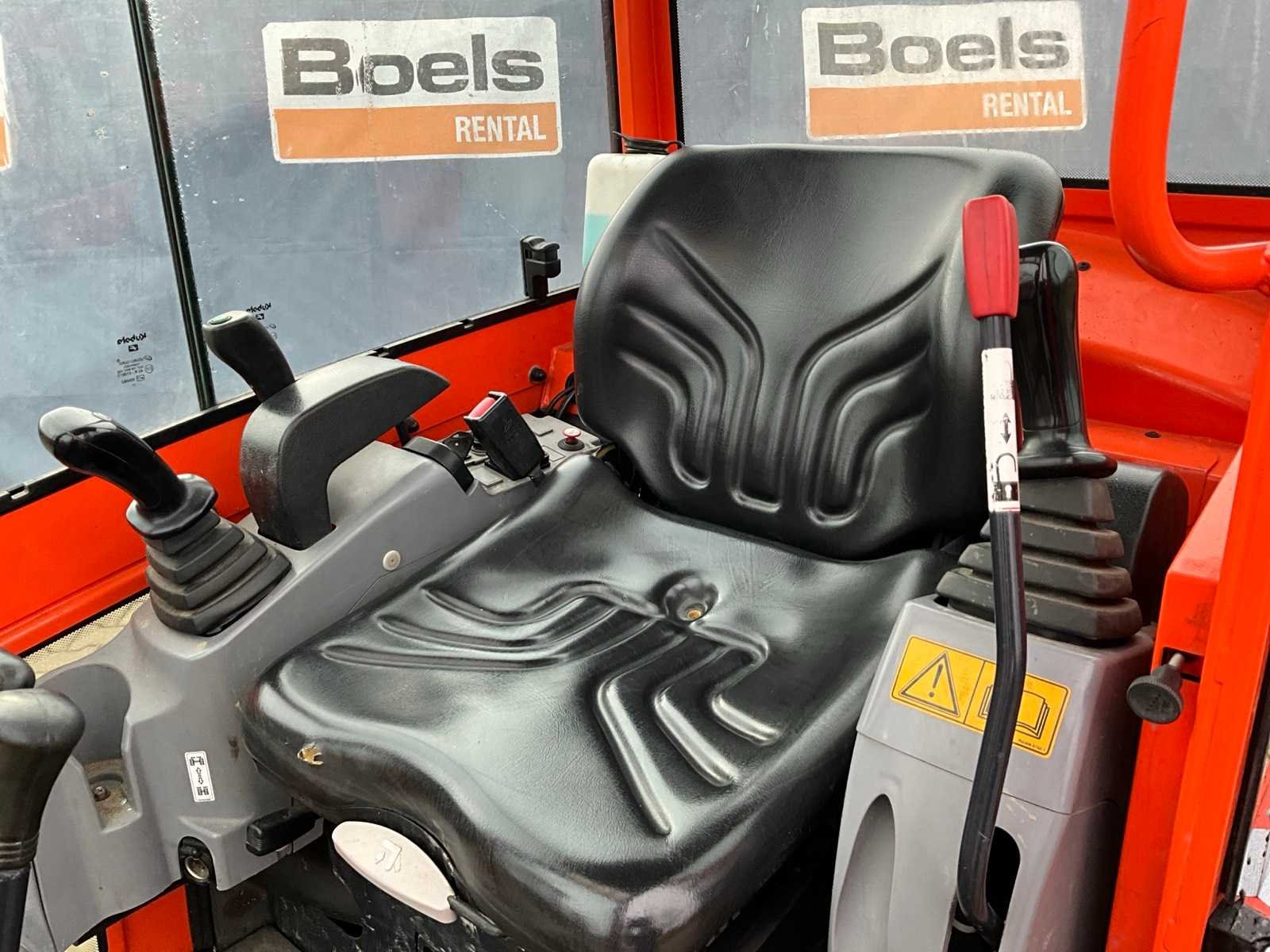 Gesloten cabine; rubber rupsbanden; rupsen hydraulisch in breedte verstelbaar 990 - 1240 mm; maximale uitstorthoogte 2250 mm; extra hydraulische functie; snelwissel; dozerblad breedte 1250 mm voorzien van verlengstuk; working condition; Nee Merk: Kubota Type: KX016-4G Bouwjaar: 2017 Serienummer: WKFRGB1200Z061986 Merk motor: Kubota Motorvermogen (kW): 9.6kW Aantal cilinders: 3 Brandstof: Diesel Max. werkbereik: 3730mm Max. graafdiepte: 2250mm Graafbak afm. l: 1000mm Graafbak afm. b: 300mm Graafbak afm. h: 250mm Rups breedte: 230mm Afgelezen urenstand: 1965 Eigen gewicht: 1625kg Totale afmeting L: 3750mm Totale afmeting Breedte: 1250mm Totale afmeting Hoogte: 2350mm