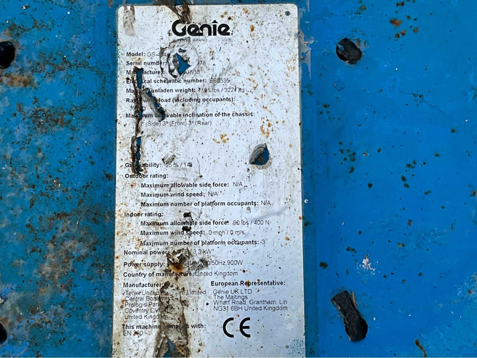 Platform vloerhoogte 11700 mm; uitschuifbaar platform afmeting circa 3150x1150 mm; interne acculader 230 Volt; kooibediening; transport hoogte 1950 mm; working condition; Nee Merk: Genie Type: GS-4047 Bouwjaar: 2013 Serienummer: Niet leesbaar Elektrisch: true Schaarhoogwerker: true Werkhoogte: 13700mm Plateau afm. l: 2250mm Plateau afm. b: 1150mm Platform capaciteit: 350kg Accu lader: true Afgelezen urenstand: 243 Eigen gewicht: 3300kg Totale afmeting L: 2550mm Totale afmeting Breedte: 1200mm Totale afmeting Hoogte: 2550mm