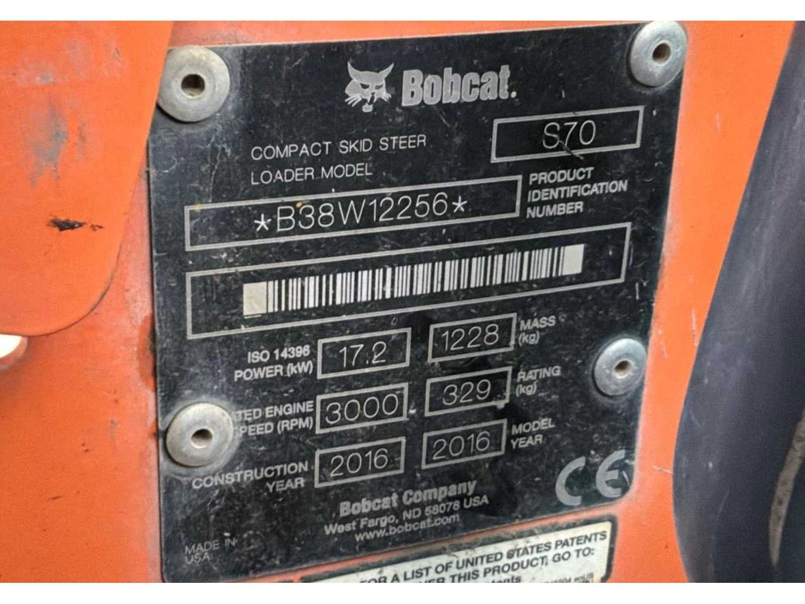 Beschermde kooi; voorzien van schepbak en vorkenbord, bak inhoud 200 liter; hefvermogen 329 kg; working condition; Nee Merk: Bobcat Type: S70 Bouwjaar: 2016 Serienummer: B38W12256 Merk motor: Kubota Motorvermogen (kW): 17.2kW Aantal cilinders: 3 Brandstof: Diesel Graafbak afm. l: 660mm Graafbak afm. b: 1100mm Graafbak afm. h: 440mm Cabine: true Afgelezen urenstand: 2607 Eigen gewicht: 1300kg Totale afmeting L: 2700mm Totale afmeting Breedte: 1100mm Totale afmeting Hoogte: 1850mm