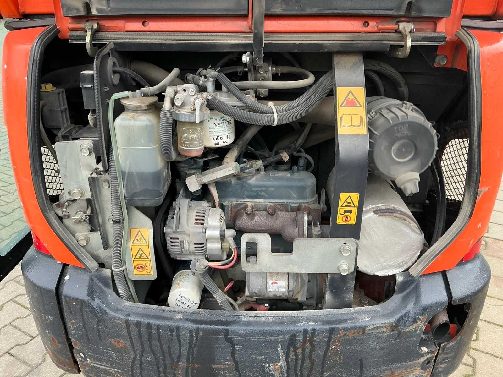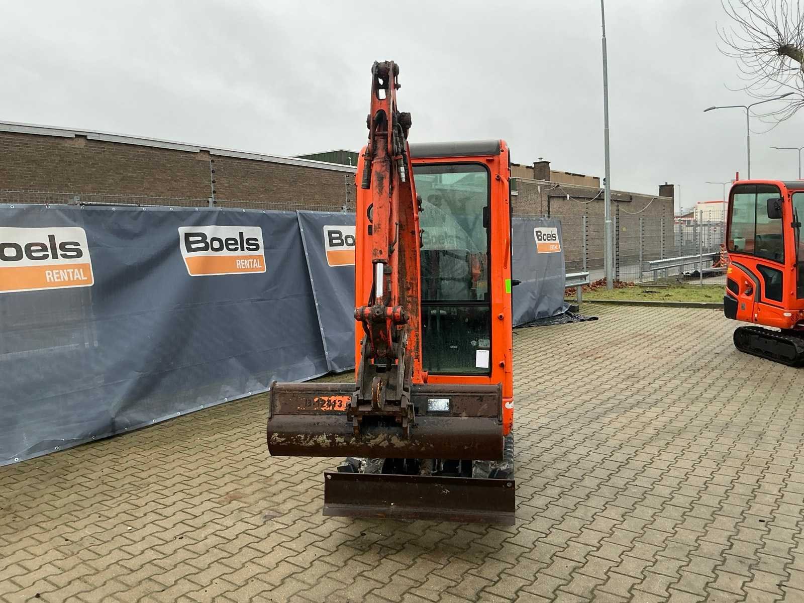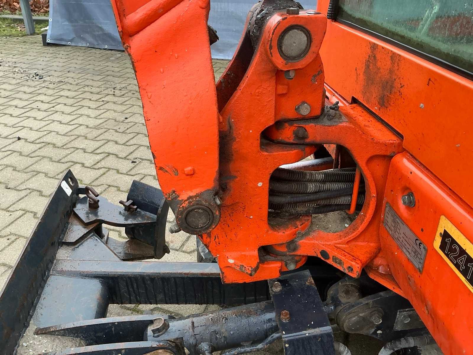 Gesloten cabine; rubber rupsbanden; rupsen hydraulisch in breedte verstelbaar 990 - 1240 mm; maximale uitstorthoogte 2250 mm; extra hydraulische functie; snelwissel; dozerblad breedte 1250 mm voorzien van verlengstuk; working condition; Nee Merk: Kubota Type: KX016-4 Bouwjaar: 2016 Serienummer: WKFRGB1200Z060029 / 60029 Merk motor: Kubota Motorvermogen (kW): 9.6kW Aantal cilinders: 3 Brandstof: Diesel Max. werkbereik: 3730mm Max. graafdiepte: 2250mm Inclusief graafbak: Yes Graafbak afm. l: 340mm Graafbak afm. b: 1010mm Graafbak afm. h: 260mm Rups breedte: 230mm Afgelezen urenstand: 2195 Eigen gewicht: 1615kg Totale afmeting L: 3750mm Totale afmeting Breedte: 1250mm Totale afmeting Hoogte: 2350mm