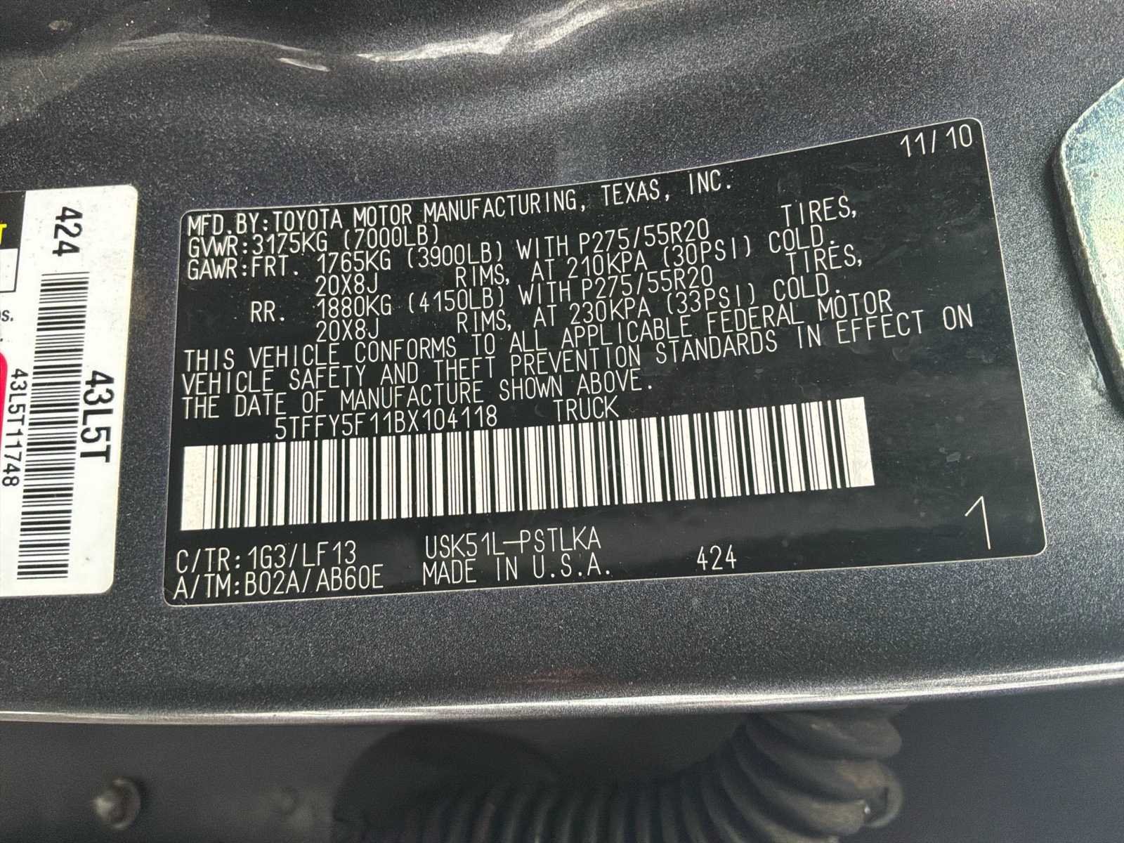 Let op! Dit voertuig heeft een kenteken registratie. Bij afhalen dient u dit ter plaatse bij een derde partij te naam te stellen of te exporteren. hier zijn extra kosten aan verbonden. Let op motorstoring missfire No Kenteken: 5VPJ63 Merk: Toyota Model: Tundra Type: 5.7 V8 Crew. Plat. Bouwjaar: 2011 Cilinderinhoud: 5663cc Vermogen (kW): 284kW Brandstof: Benzine / LPG Afgelezen mijlenstand: 210914mi Chassisnummer: 5TFFY5F11BX104118 Laadvermogen: 571kg Datum eerste toelating: 2011-06-23 Datum eerste toelating (NL): 2011-06-23 APK vervaldatum: 2025-12-21 Vermogen (pk): 386hp Aandrijving: AWD Aantal zitplaatsen: 5 Maximaal trekgewicht ongeremd: 750kg Maximaal trekgewicht geremd: 3500kg Kleur: Groen gewraped / origineel donkergrijs Transmissie: Automaat Gasinstallatie: true Accessoires - checkbox: Lederen bekleding * elektrisch bedienbare stoelen met geheugenfunctie * dakraam * airco * achteruitrijcamera * parkeersensoren achter * JBL sound * trekhaak Stuurwiel: Links multifunctioneel Emissieklasse: 5 Aantal deuren: 4 Aantal sleutels: 2 Ledig gewicht: 2604kg Velgmaat: 20 Bruto BPM (NL): 6106€ Aantal cilinders: 8 Carrosserie: Vrachtwagen Nationaliteit documenten: Nederlands Onderhoudshistorie: Gedeeltelijk aanwezig danwel digitaal Carfax Link: https://was.carfax.eu/v0/api/ccdid/5100016408/svc/201/vinreg/5VPJ63/checksum/eyJhbGciOiJIUzI1NiIsInR5cCI6IkpXVCJ9.eyJleHAiOjE3NzM0MDQ0OTJ9.MpZfJSCsaSNGfWQApn6UJDMj76EaVYQUe0hfoVDArT8 Start en rijdt: Ja startinformatie : Start naar behoren Zichtbare schade: Lederen bekleding gescheurd voorstoel * wrapping beschadigd rondom * gebruikerssporen naar leeftijd en kilometerstand Leder bekleed: true Leveringsvoorwaarden: Niet gefundeerd - onverpakt