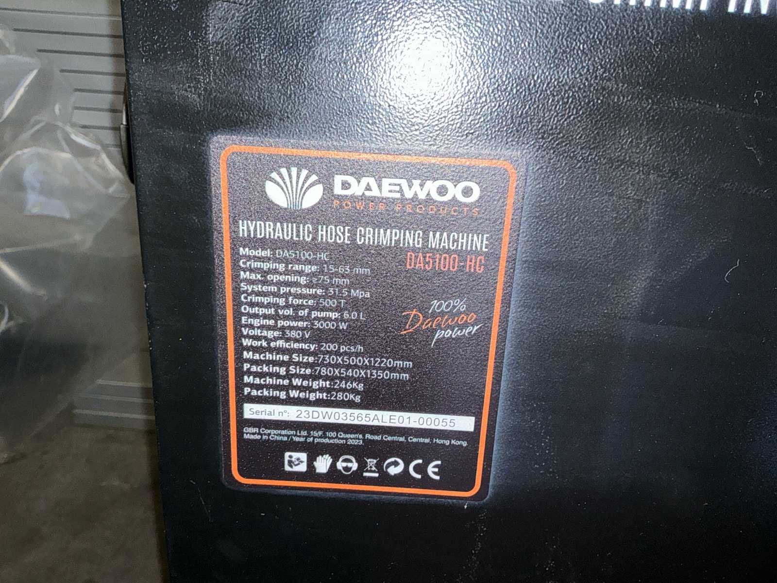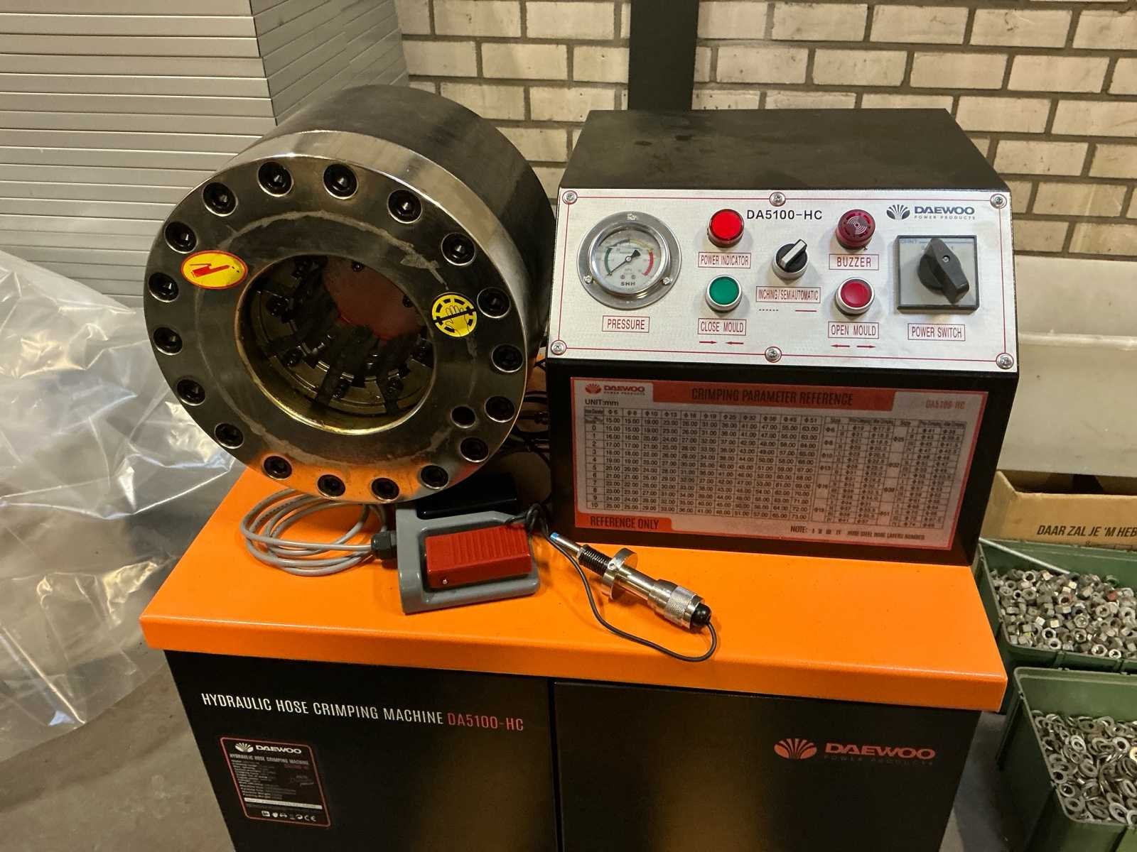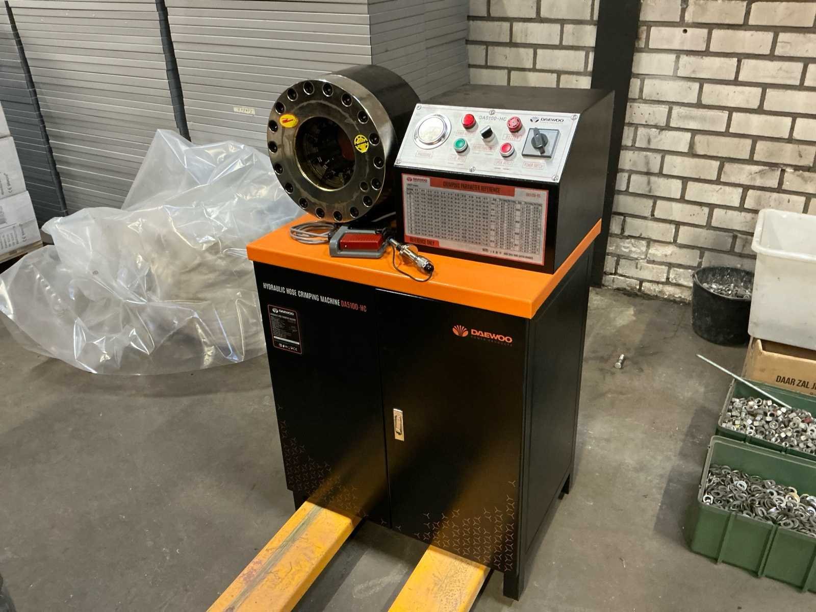 Bestaat uit: krimpbereik: 1/4-2”, aantal matrijzen: 10 sets (15, 19, 23, 26, 31, 36, 41, 47, 55, 63), maximale opening: 75 mm, systeemdruk: 31,5 MPa, krimpkracht: 500 T, pompinhoud: 6 L, motorvermogen: 3 kW, spanning: 380 V 3-fasen, werkcapaciteit: 200 stuks/uur, afmetingen: 770 x 530 x 1320 mm, gewicht: 280 kg, ongebruikt. Nee Merk: Daewoo Type: DA 1500-HC Bouwjaar: 2023 Serienummer: 23DW03565ALE01-00055 Perskracht: 500kN Aansluiting: 380V Machinegewicht: 280kg Afmeting l: 770mm Afmeting b: 530mm Afmeting h: 1320mm