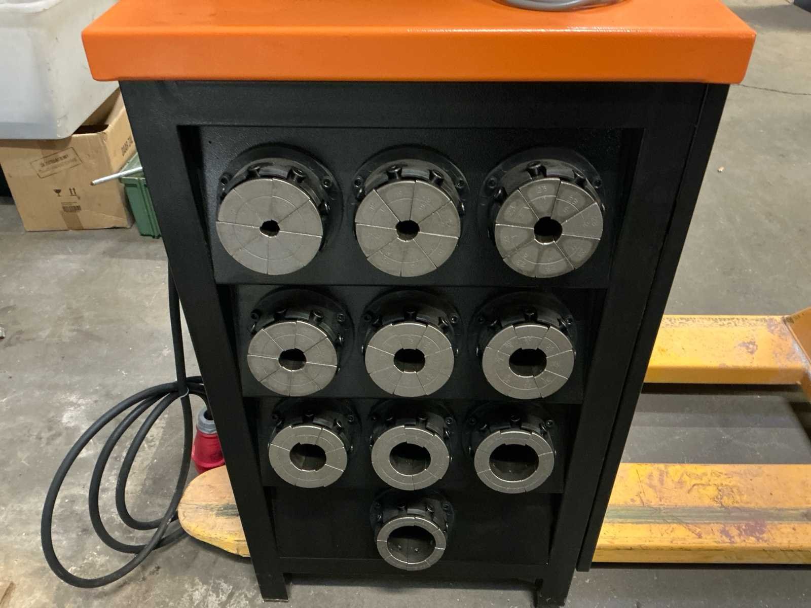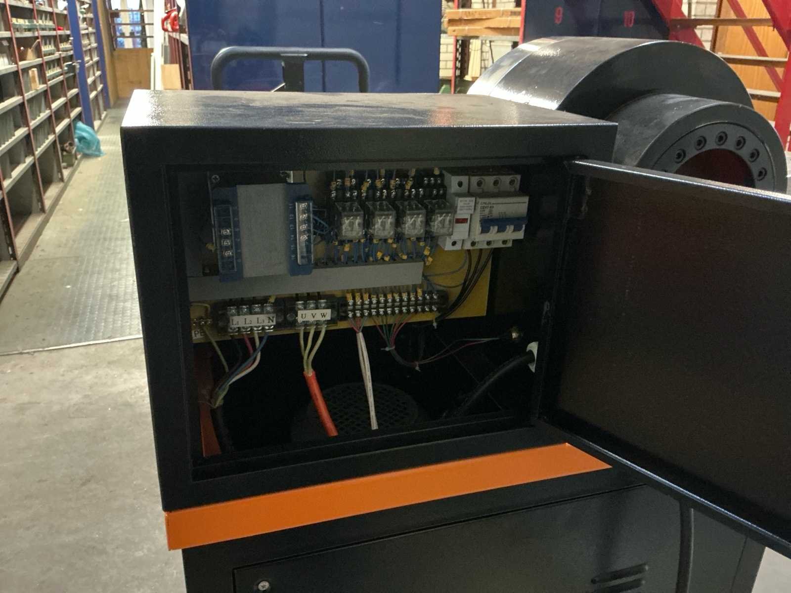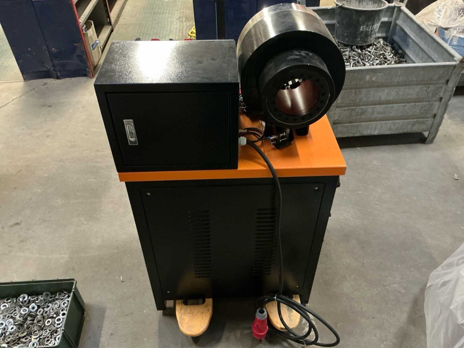 Bestaat uit: krimpbereik: 1/4-2”, aantal matrijzen: 10 sets (15, 19, 23, 26, 31, 36, 41, 47, 55, 63), maximale opening: 75 mm, systeemdruk: 31,5 MPa, krimpkracht: 500 T, pompinhoud: 6 L, motorvermogen: 3 kW, spanning: 380 V 3-fasen, werkcapaciteit: 200 stuks/uur, afmetingen: 770 x 530 x 1320 mm, gewicht: 280 kg, ongebruikt. Nee Merk: Daewoo Type: DA 1500-HC Bouwjaar: 2023 Serienummer: 23DW03565ALE01-00055 Perskracht: 500kN Aansluiting: 380V Machinegewicht: 280kg Afmeting l: 770mm Afmeting b: 530mm Afmeting h: 1320mm