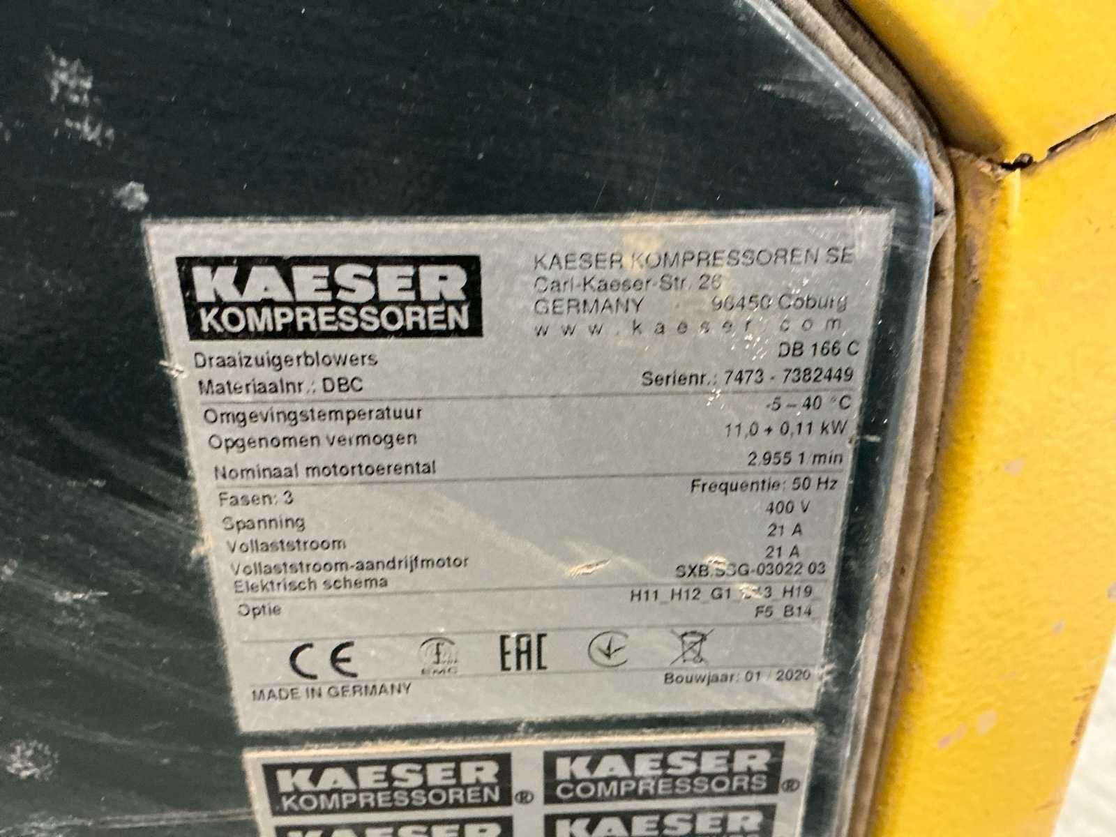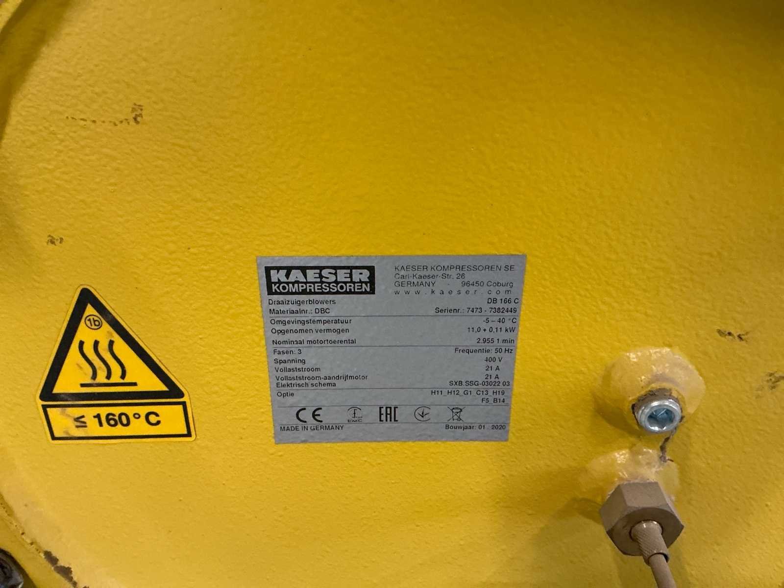 Bestaat uit: debiet: ca. 1000 m³/min, druk: Tot 1000 mbar (manometerdruk) of ~14,5 psi, vacuüm: Tot 37 mbar (of ~15" Hg), OMEGA profiel roterende lobbenventilator, 1110 x 1160 x 1300 mm. Nee Merk: Kaeser Type: DB166c Bouwjaar: 2020 Serienummer: 7473 - 7382449 Luchtstroom: 2955l/min Vermogen: 11kW Luchtdroger: true Aansluiting: 400V Eigen gewicht: 822kg Totale afmeting L: 1110mm Totale afmeting Breedte: 1160mm Totale afmeting Hoogte: 1300mm