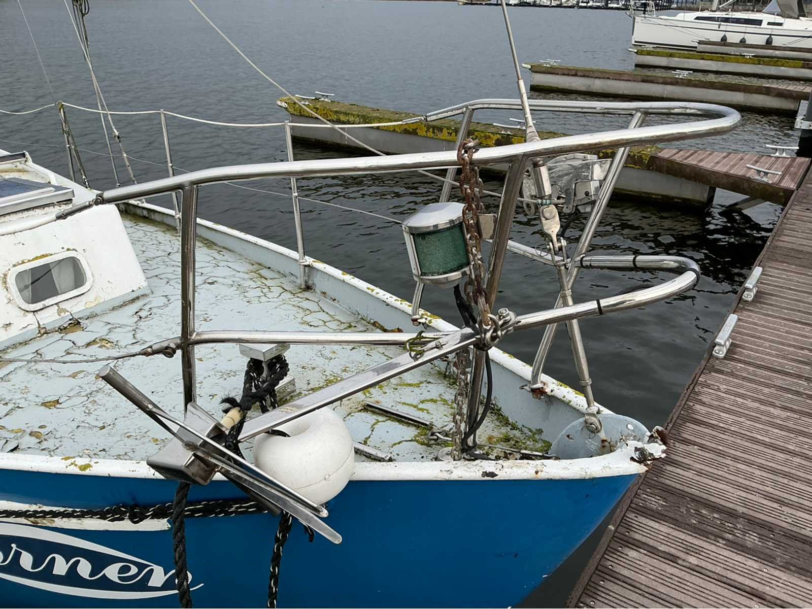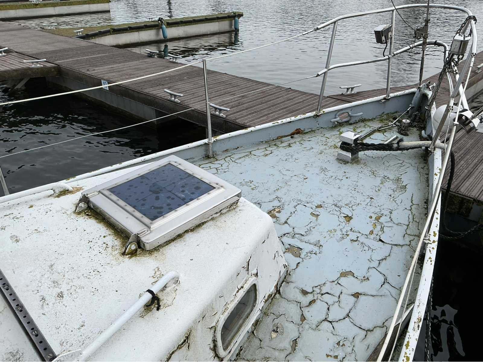 Stalen zeilboot. Voorzien van: houten mast, grootzeil met afdekzeil, 1 extra fok, RVS anker met ankerketting, RVS railing, Fenders, Navigatieverlichting, Kajuit met banken en slaapplaats, 1cilinder diesel inboard motor (werking onbekend), kleine buiskap, tuigage, zwemtrap en roer. !! EXCLUSIEF Ligplaats !! Nee Breedte: 240cm Rompmateriaal: Staal Aantal slaapplaatsen: 2 Aantal motoren: 1 Brandstof: Diesel Ligplaats lokatie: Oesterdam resort, Tholen Aantal cilinders: 1 Aantal masten: 1 Lengte: 800cm